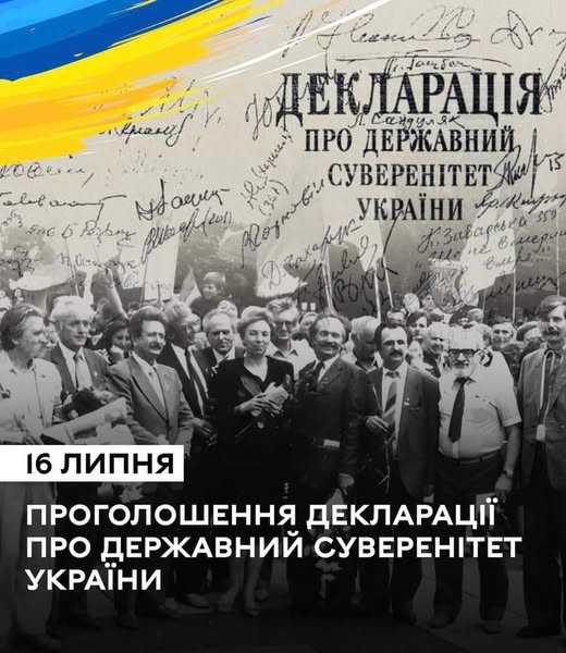 🇺🇦16 липня 35 років тому було в Україні сповненим емоцій. Цього дня, в 1990 році, Верховна Рада проголосила Декларацію про державний суверенітет України.