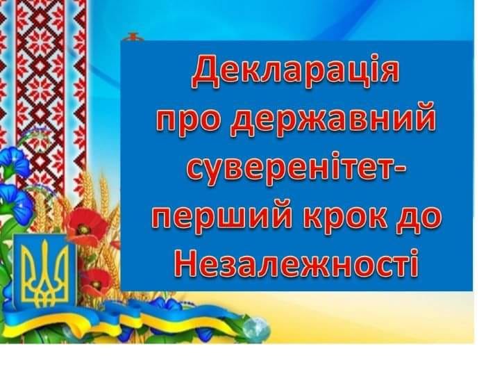 16 ЛИПНЯ – 35-ТА РІЧНИЦЯ З ДНЯ ПРОГОЛОШЕННЯ ДЕКЛАРАЦІЇ ПРО ДЕРЖАВНИЙ СУВЕРЕНІТЕТ УКРАЇНИ