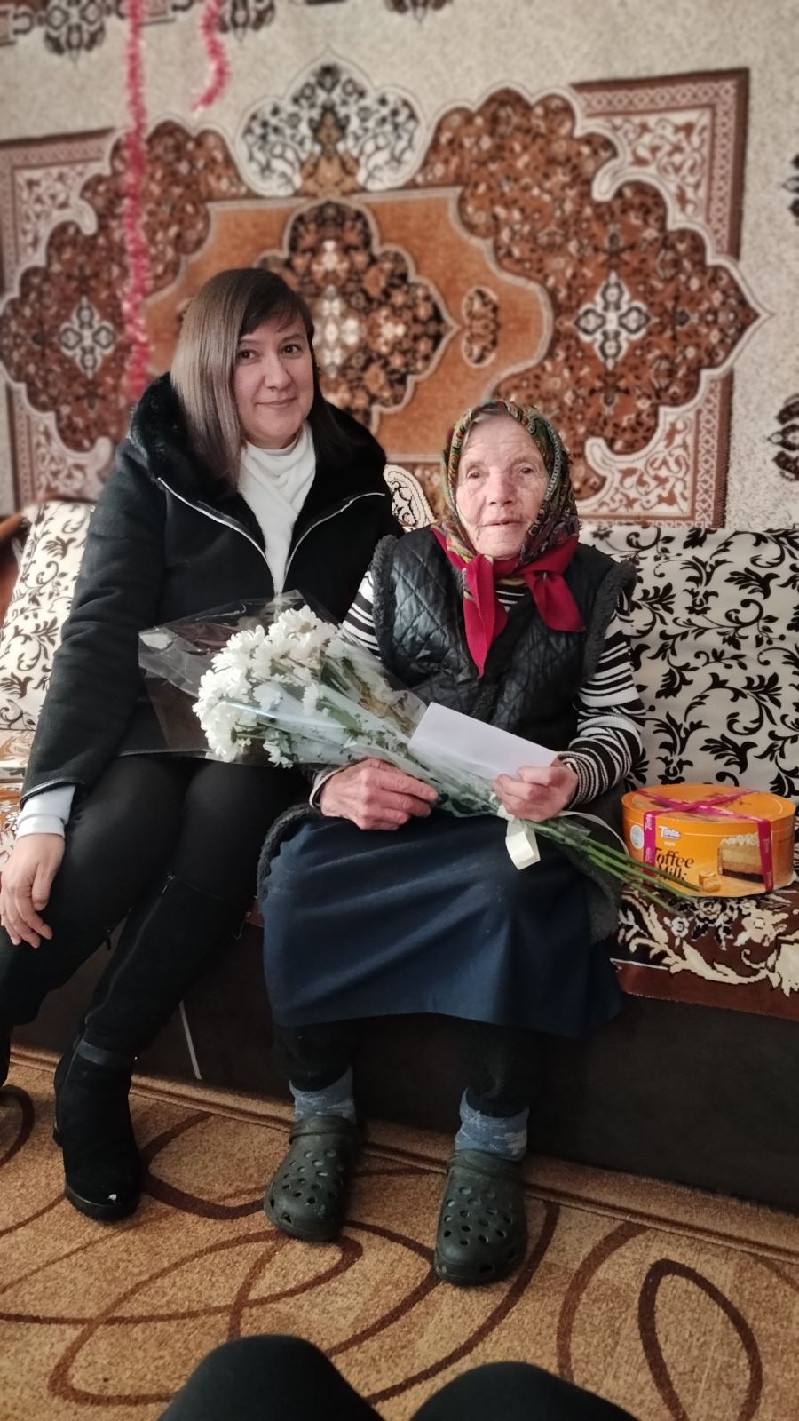 Під час візиту ювілярці висловили щирі слова вдячності за багаторічну працю, життєву мудрість, материнську турботу та гідно прожите життя. Гості побажали міцного здоров’я, душевного спокою, родинного затишку, тепла та Божої опіки на кожен день.