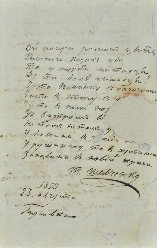 Перебуваючи у Гирявці, на добру згадку про себе, про зустріч з Агафією Олексіївною 22 серпня 1859 року він намалював її портрет і записав до її альбому вірш «Садок вишневий коло хати». Саме тут він напише чистовий автограф вірша «Ой по горі ромен цвіте» з авторською датою «1859. 23 августа. Гирівка», що містить варіанти в п’ятому і шостому рядках.