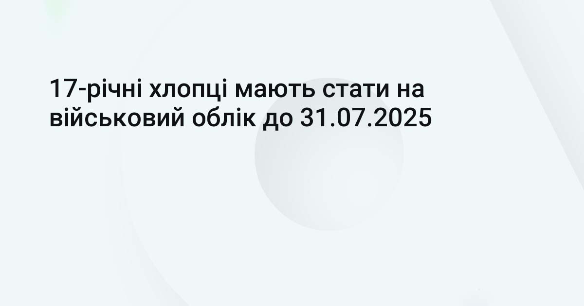 17-річні українці: обов’язковий військовий облік до 31 липня