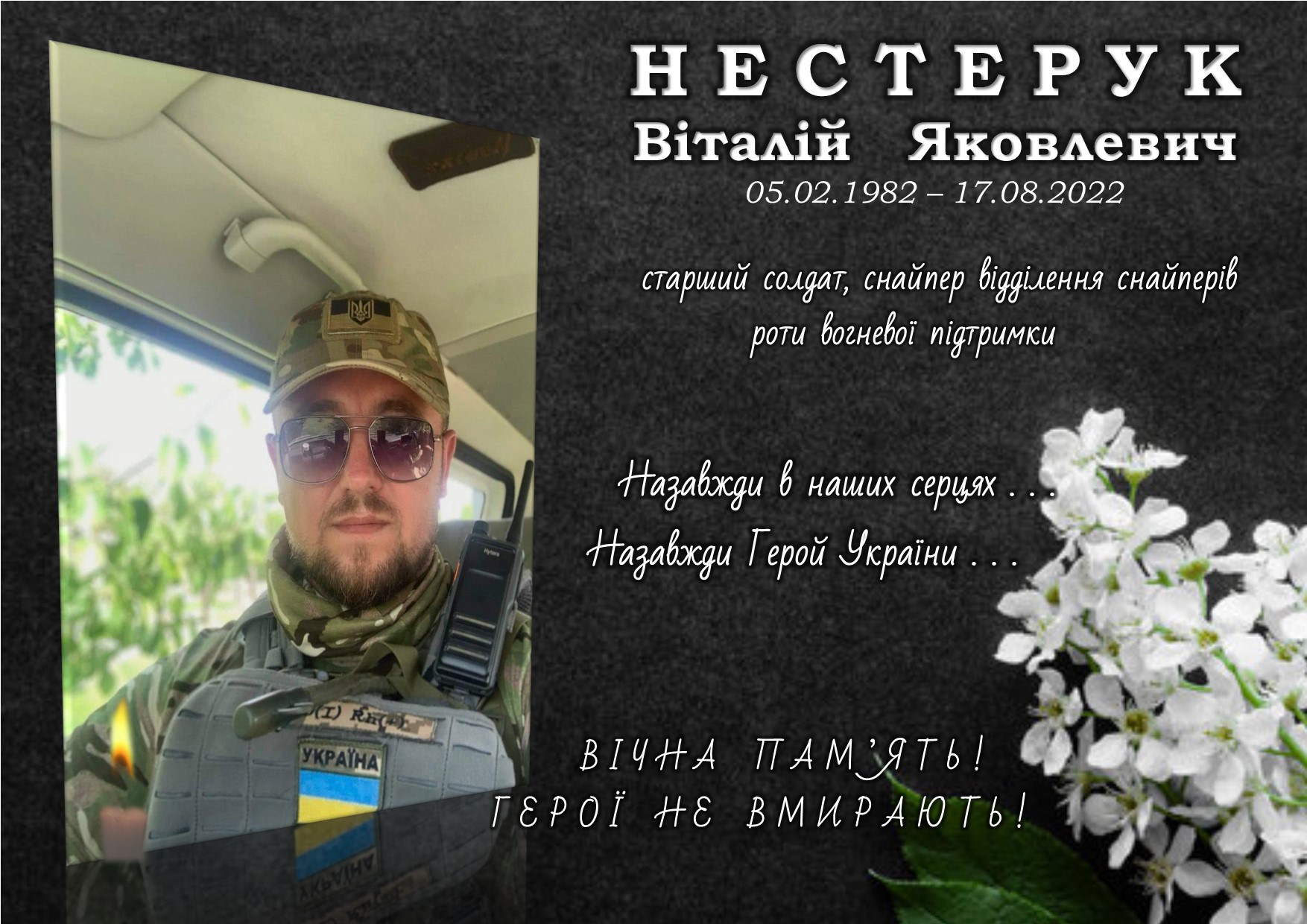Час невпинно біжить, але він не здатен стерти з нашої пам’яті подвиги та імена справжніх Героїв сучасності, які жертовно віддали свої життя у боротьбі за свободу та незалежність України. Віталій Нестерук назавжди залишиться в серці кожного з нас як втілення найвищого патріотизму, незламності духу, щирого добра, безкорисливої самопожертви та безмежної любові до рідної землі. Його приклад надихає та зміцнює нашу віру в перемогу.