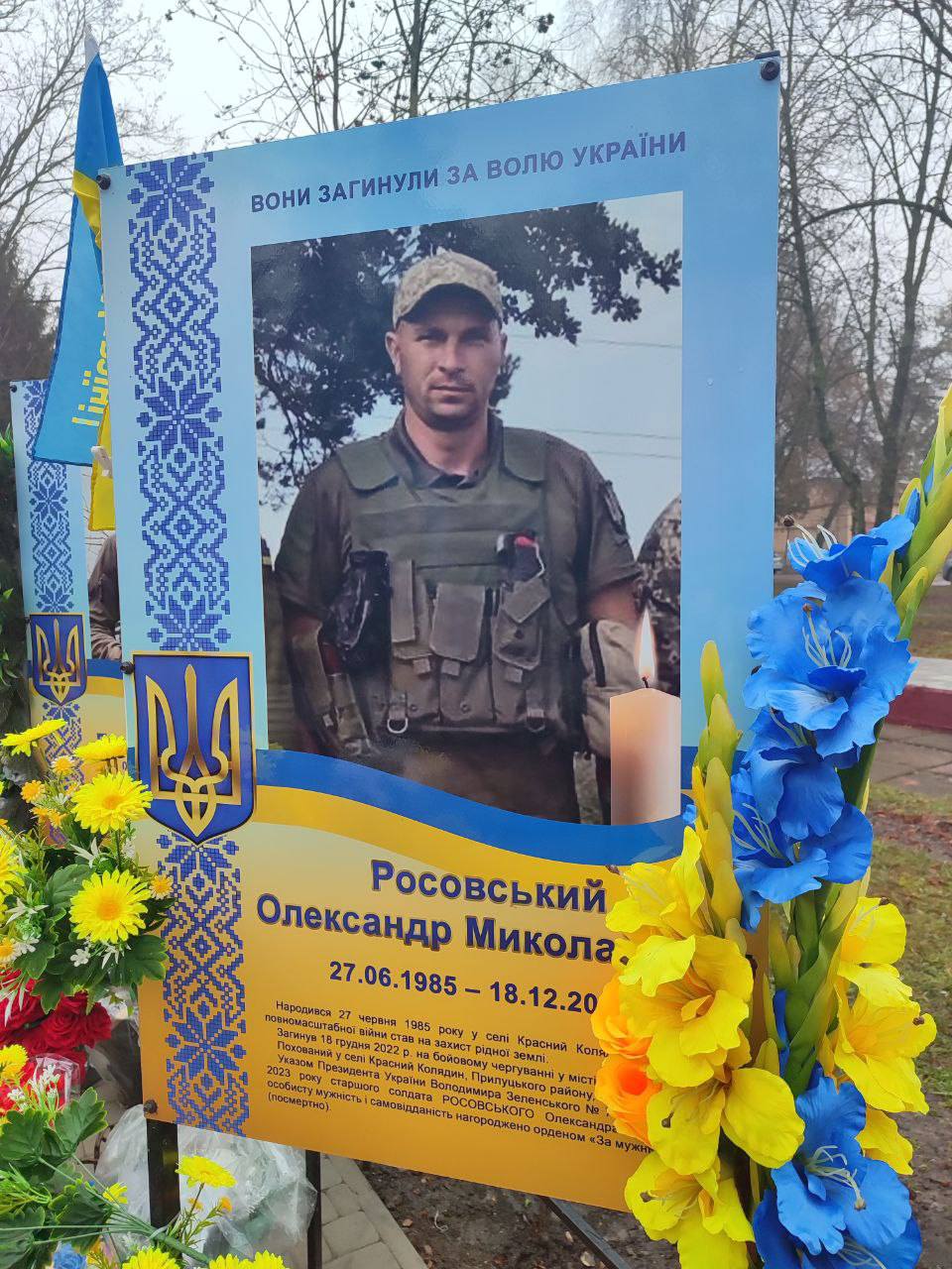 18 грудня — ще одна скорботна дата у нашій громаді. Минає 3 роки від дня загибелі на фронті нашого земляка Олександра Миколайовича РОСОВСЬКОГО. Олександр народився 27 червня 1985 року у селі Красний Колядин, закінчив місцеву школу і відразу пішов працювати. У ТОВ «Красноколядинське» тривалий час Олександр працював на різній техніці. На захист України став із першого дня повномасштабної війни.