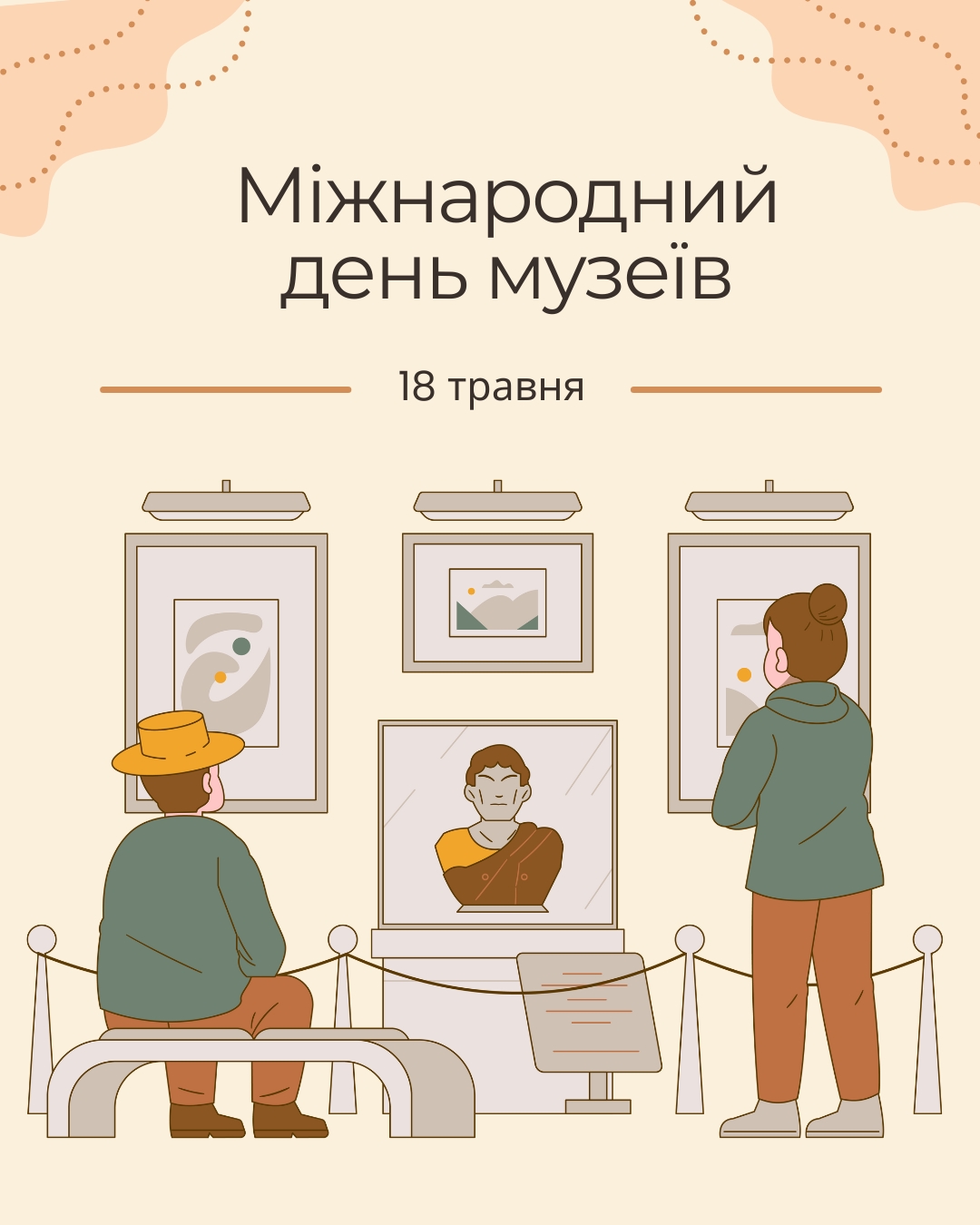 18 травня світ відзначає Міжнародний день музеїв. Музей – це не просто місце, де зберігаються старі речі, це справжній храм часу. Тут, у кожному експонаті, живе душа народу, а кожен куточок дихає історією. Сьогодні музеї перетворилися на інтерактивні простори, де відвідувачі можуть вести діалог з минулим, отримувати освіту та надихатися. Саме музеї відіграють ключову роль у збереженні унікального культурного коду нашої нації, передають любов до рідної землі та допомагають нам шанувати спадщину наших предків.