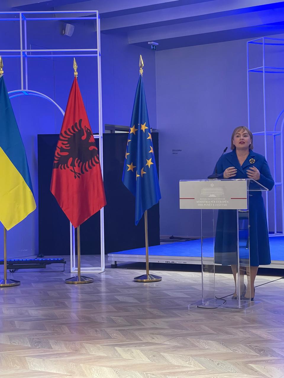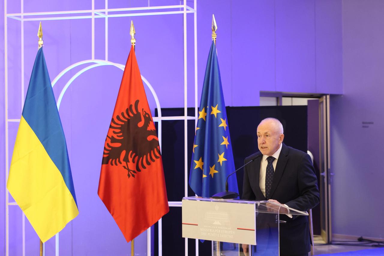 Посол Володимир Шкуров у своєму вітальному слові підкреслив, що сьогоднішні учасники, українські творчі колективи із селища Каракурт, продовжують свої репитиці у важких умовах війни, адже сьогодні Одещина переживає повний блекаут. Їхня відданість мистецтву свідчить про любов до албанської культури та їхньої батьківщини, що потерпає зараз від жахіть війни. Їхня творчість – це вияв особистої ідентичності, нерозривності з культурою своїх предків та мужності. Володимир Шкуров висловив вдячність особисто Міністерці Європи і закордонних справ Албанії Eliza Spiropalii та її заступниці Miriam Shyti, а також Виконавчій директорці Національного агентства у справах діаспори Ermonela Xhafa за підтримку цього прекрасного проєкту.