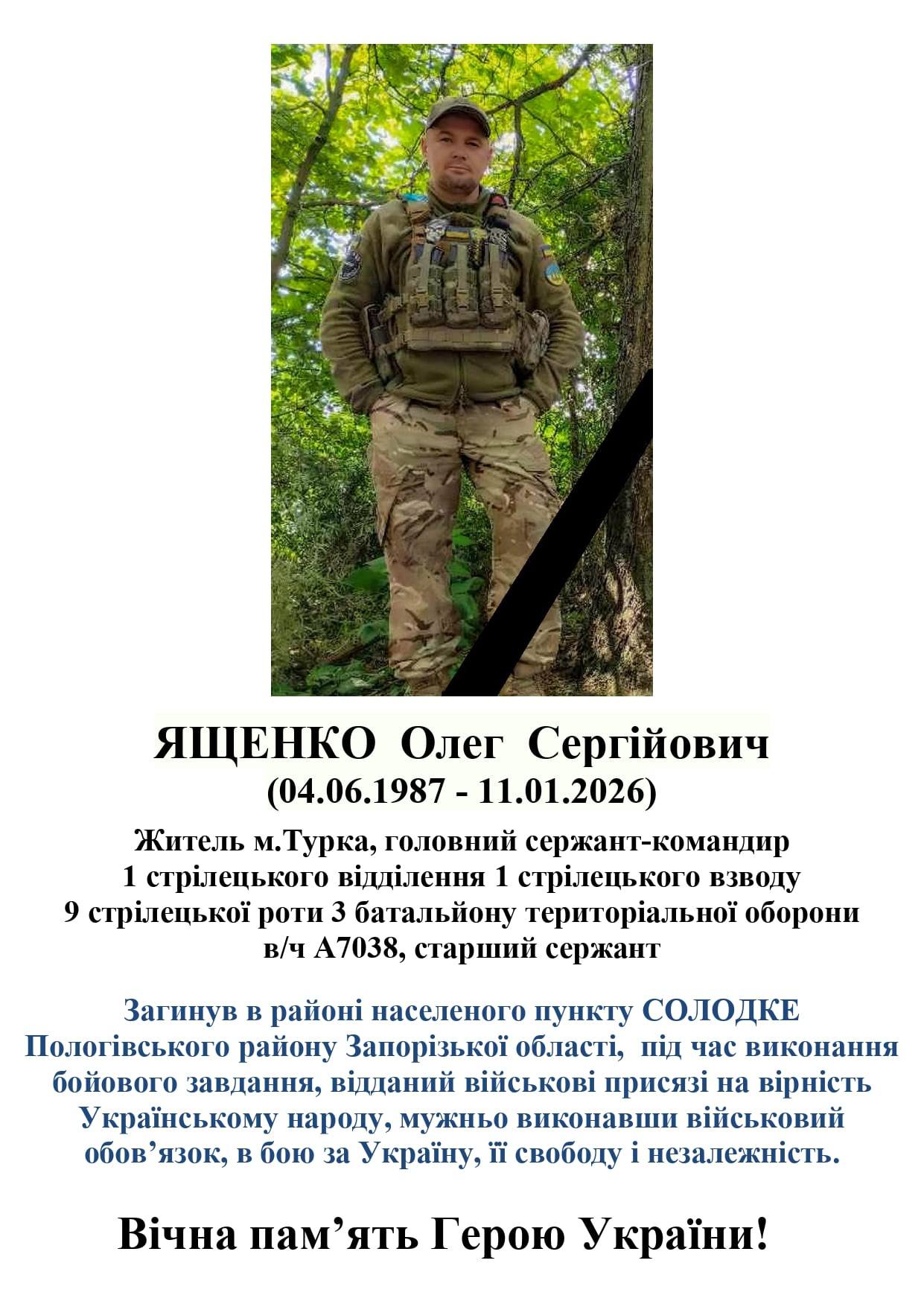 ⚫️ Прощання з Героєм відбудеться цього ж дня 19.01.2026р. 13:00год. (Церква Святих Петра і Павла вул.Міцкевича м.Турка).