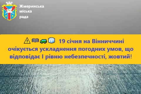 ❗️ 🌫🚙🧊 19 січня на території Вінницької області очікується ускладнення погодних умов, що відповідає I рівню небезпечності, жовтий!
