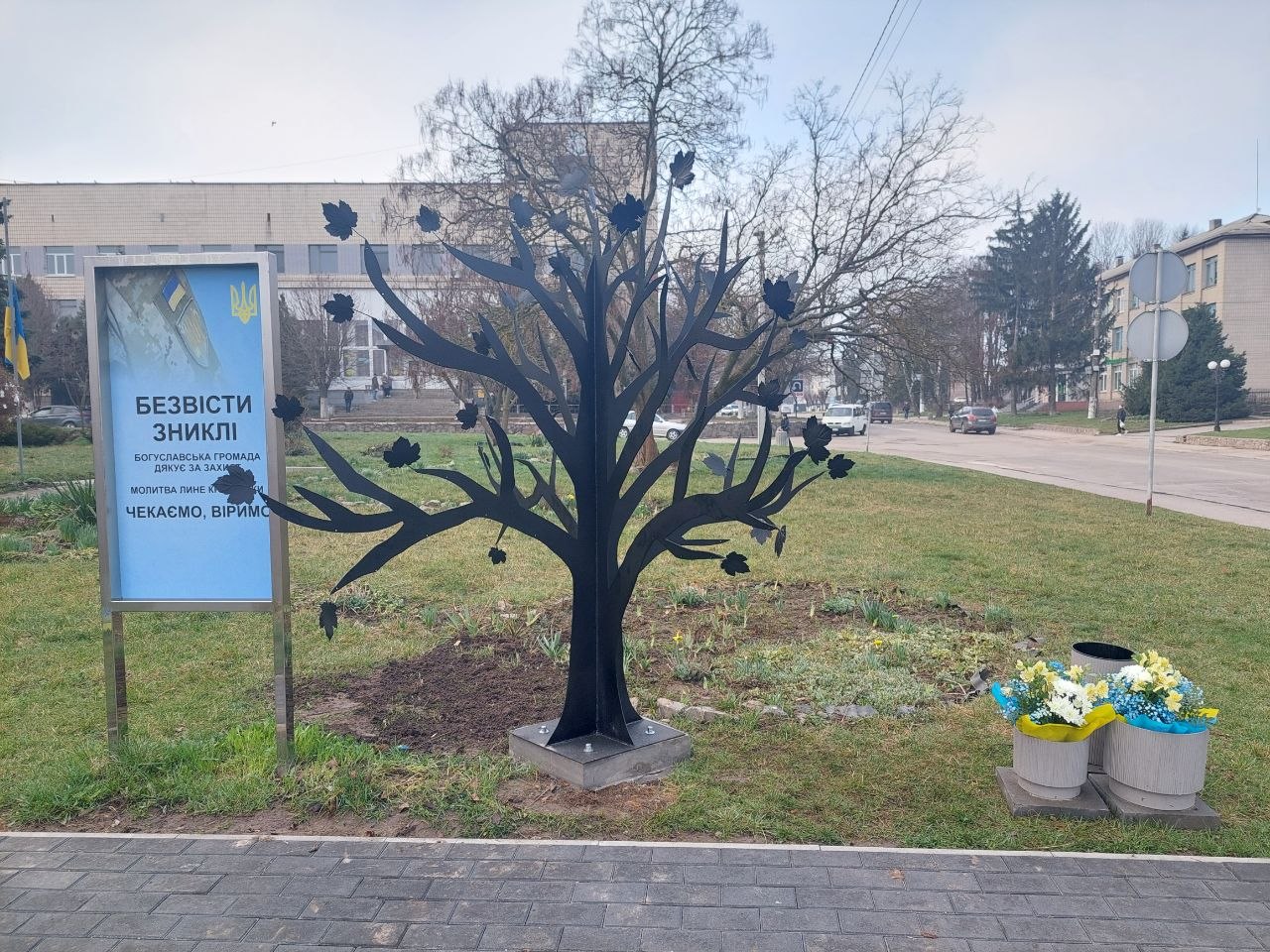 Після вшанування хвилиною мовчання полеглих Героїв учасникам заходу було запропоновано повісити на металеві гілки дерева жетони «Чекаємо. Віримо. Богуславська громада», написавши на них прізвище рідної людини, яку з нетерпінням чекають вдома щоднини, щомісяця, щороку…