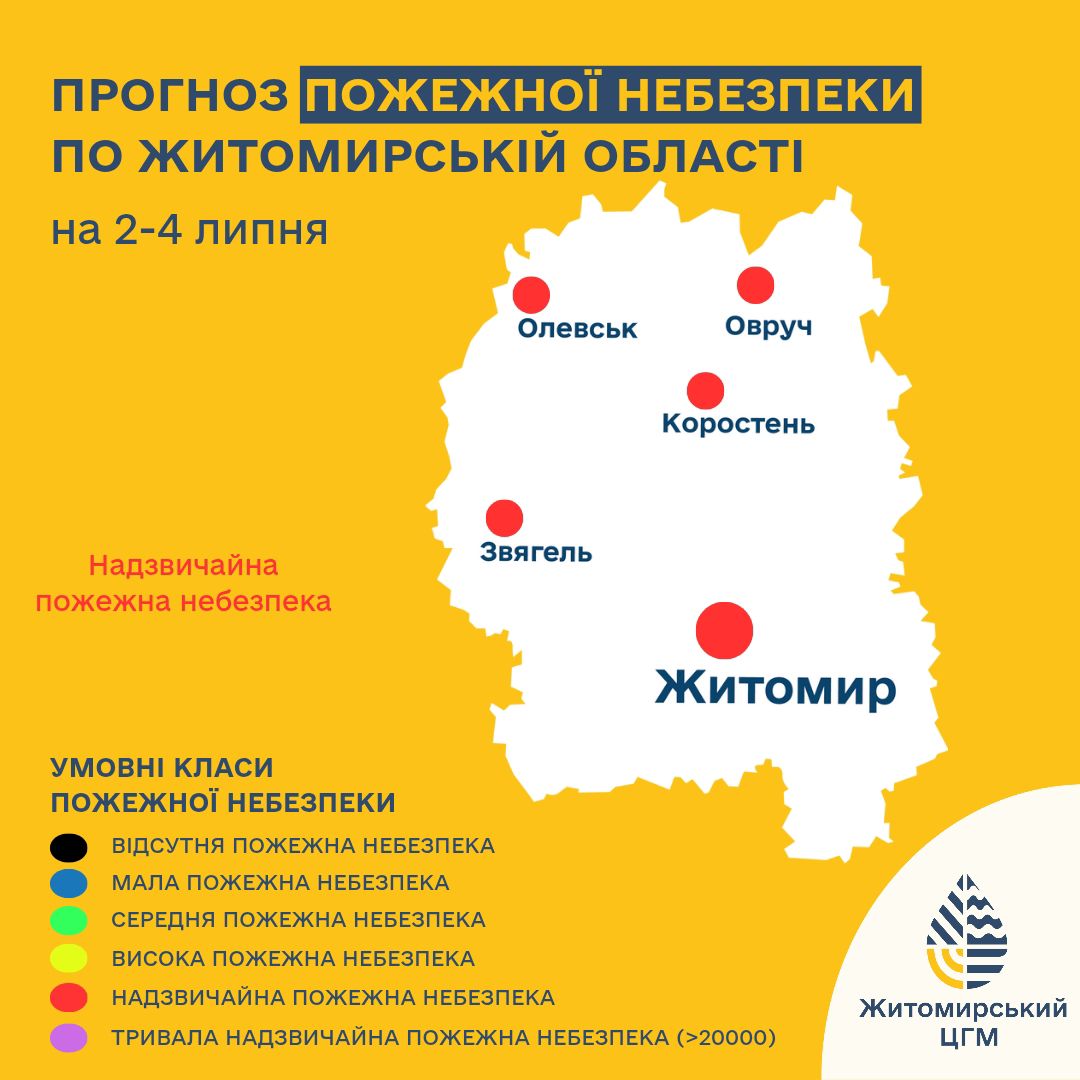 З 2 по 4 липня 2024 року на території Житомирської області оголошено надзвичайну (5 клас) та високу (4 клас) пожежну небезпеку. Це серйозне попередження для мешканців та гостей регіону, адже погодні умови цього періоду значно підвищують ризик виникнення та швидкого поширення загорянь у лісових масивах, на полях та торфовищах. Необережне поводження з джерелами займання, особливо з відкритим вогнем, може призвести до катастрофічних наслідків для екосистем та населених пунктів Житомирщини.Оголошення надзвичайної (5 клас) небезпеки означає найвищий ступінь загрози, коли навіть найменша іскра або недбало кинутий недопалок здатні спровокувати масштабну пожежу. Високий (4 клас) рівень також вимагає максимальної пильності, оскільки суха, спекотна погода та можливі пориви вітру створюють ідеальні умови для миттєвого займання рослинності. У такі періоди ризик виникнення пожеж зростає в рази, тому кожна людина має усвідомлювати свою відповідальність за збереження природи.Більшість пожеж в екосистемах мають антропогенний характер. Вони виникають через спалювання сухої трави та сміття, розведення багать у невідведених місцях, іскри від транспортних засобів, сільськогосподарські пали та інші необережні дії. Наслідком таких загорянь є не лише знищення тисяч гектарів лісів, загибель тварин та птахів, а й погіршення якості повітря через дим, що впливає на здоров’я мешканців, особливо в містах і селищах. Економічні збитки від лісових пожеж обчислюються мільйонами гривень.Щоб запобігти лиху, категорично забороняється: розводити багаття в лісах та на відкритих територіях поза спеціально обладнаними місцями; спалювати суху рослинність, залишки сільськогосподарських культур та побутове сміття; залишати без нагляду джерела відкритого вогню; кидати непогашені сірники та цигарки; використовувати несправні транспортні засоби, що можуть спричинити іскри; залишати на сонячних ділянках скляні пляшки чи інші предмети, які здатні сфокусувати сонячне проміння. Дотримання цих правил пожежної безпеки є обов’язковим для всіх.Нагадуємо, що порушення встановлених правил пожежної безпеки тягне за собою адміністративну та кримінальну відповідальність. Кожен громадянин має бути свідомим щодо своїх дій та їх потенційних наслідків. Захист наших лісів та полів від вогню – це спільна справа. Важливо пам’ятати, що швидкість реагування на загоряння є критичною.Якщо ви стали свідком займання або виявили ознаки пожежі, негайно телефонуйте до Державної служби України з надзвичайних ситуацій за номером 101. Ваше своєчасне повідомлення може запобігти поширенню вогню та врятувати значні території. Свідомість та відповідальність кожного українця є запорукою збереження природних багатств нашої країни.