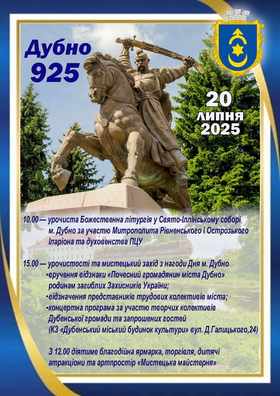 20 липня 2025 року – відзначення Дня міста та 925-річчя з часу першої писемної згадки про Дубно: