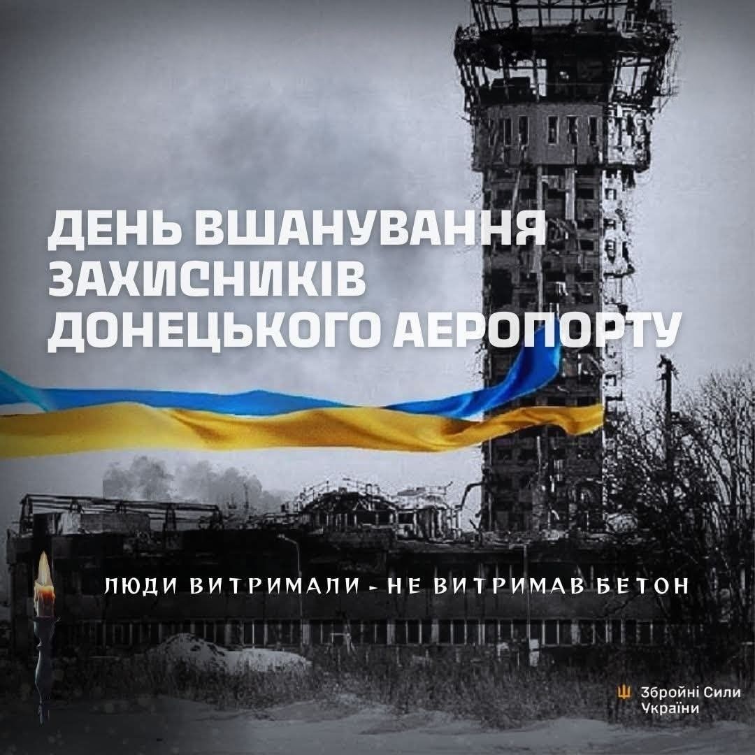 Це день пам’яті українських воїнів — легендарних «кіборгів», які у 2014–2015 роках обороняли ДАП від російських окупаційних сил.