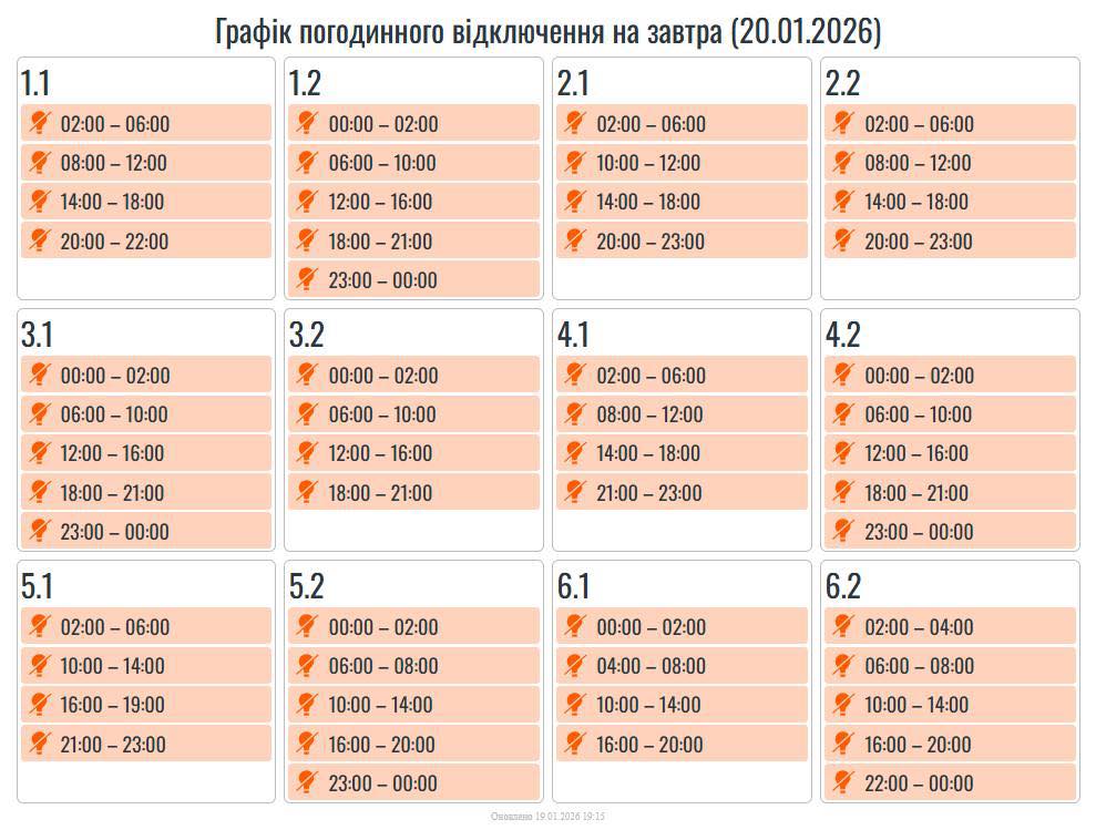 Завтра, 20 січня, в усіх регіонах України, в тому числі на Прикарпатті, будуть застосовуватися графіки погодинних вимкнень.