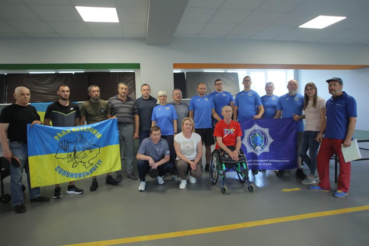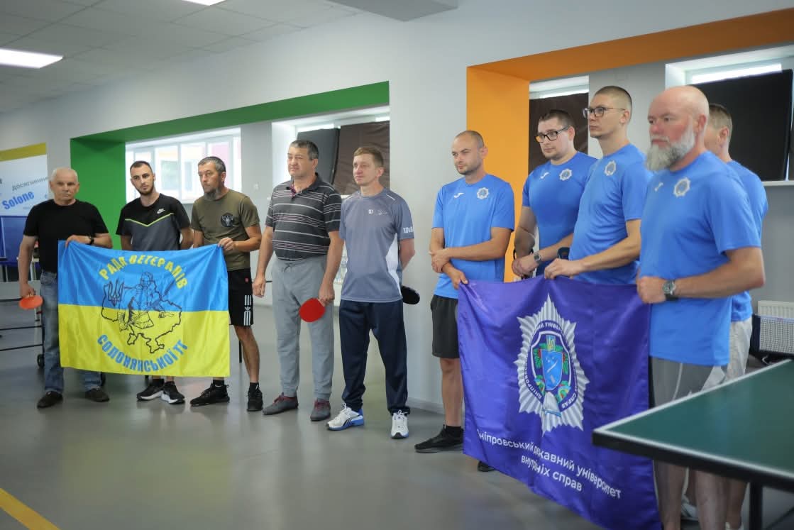 Цей був не просто черговим спортивним змаганням. Він став щирою зустріччю сердець, яскравою демонстрацією непереможної сили духу, витримки та справжнього спортивного братерства. У турнірі з настільного тенісу взяли участь дві команди, кожна з яких є прикладом мужності та стійкості. Учасники, зокрема ветерани з Солонянської громади та збірна Дніпровського державного університету внутрішніх справ, показали високий рівень підготовки та неабияку волю до перемоги.
