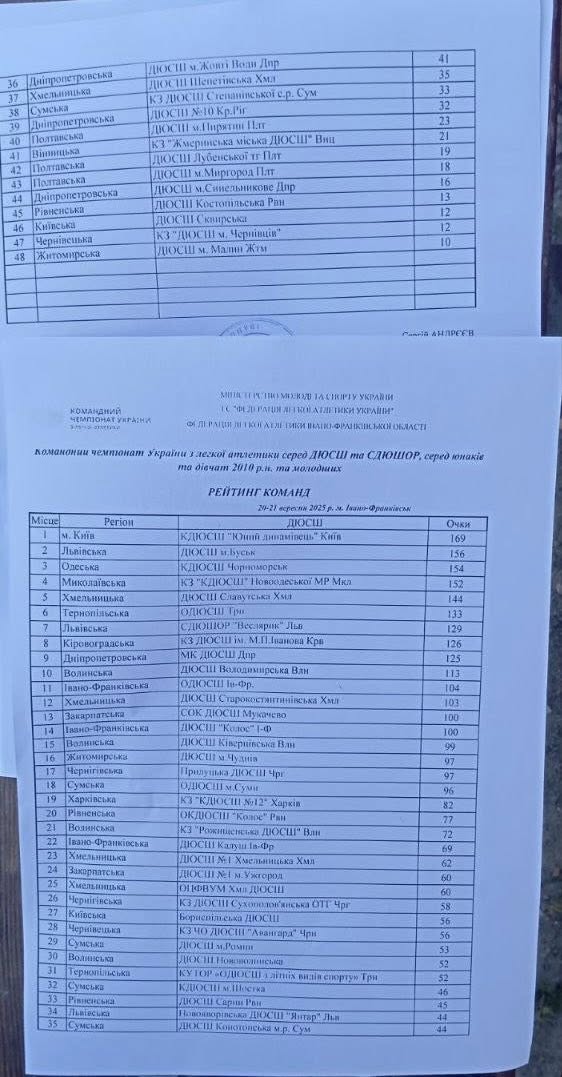 У складі команди виступали: Болгар Лілія, Бакшеєва Евеліна, Черненко Антон, Тірон Владислав, Терещенко Олексій та Красовський Роман. Їхні зусилля та майстерність принесли школі високе IV місце в командному заліку серед 48 ДЮСШ України. Набравши 152 очки, наші юні спортсмени лише трохи поступилися командам Києва (169 очок), Львова (156 очок) та Одеси (154 очки). Загалом у змаганнях взяли участь 625 легкоатлетів з 23 областей України, що свідчить про високий рівень конкуренції та загальний розвиток легкої атлетики в країні.