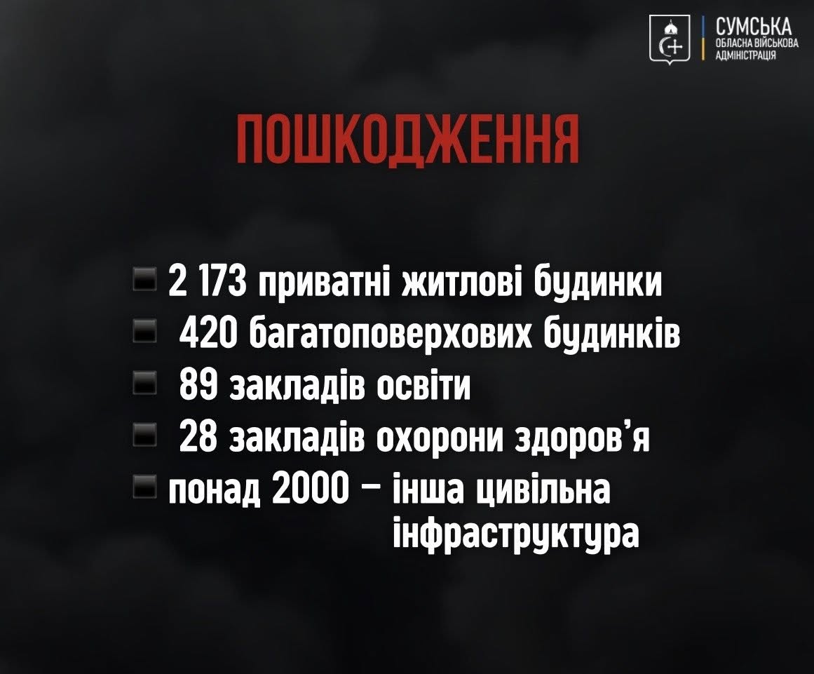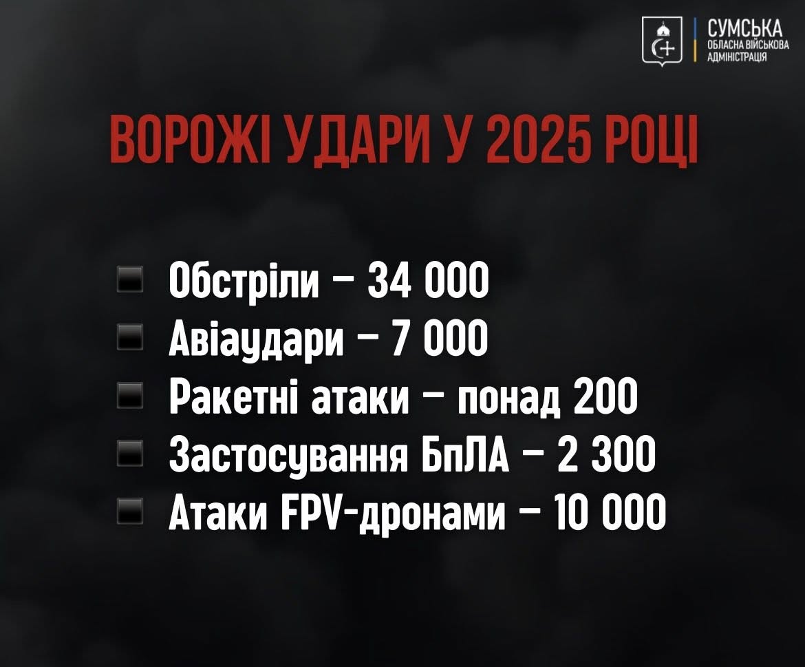 2025 рік став для Сумщини найважчим від початку повномасштабної війни