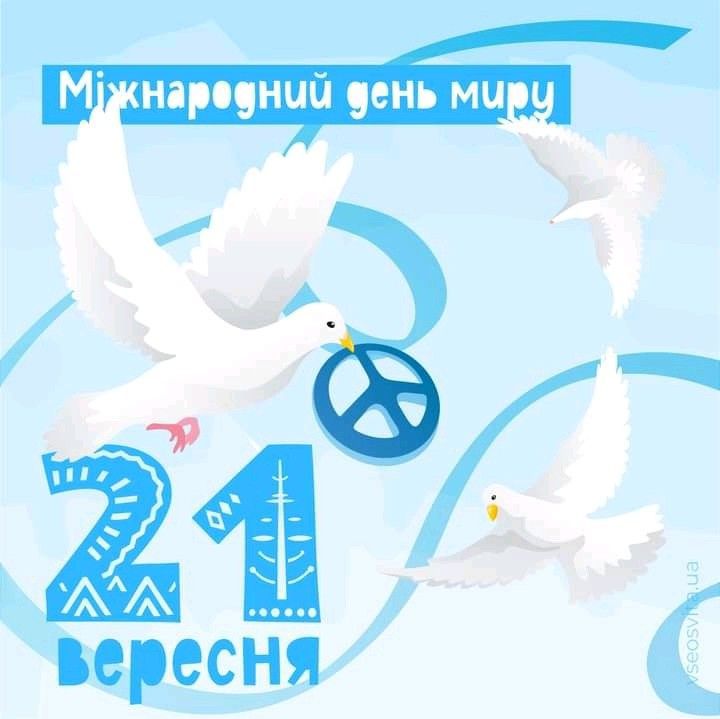 🕊️ 21 вересня – Міжнародний день миру та День миру в Україні. Цей день є важливим нагадуванням про те, що мир є найвищою цінністю як для кожної людини, так і для всієї нації. Для України поняття «мир» набуває особливого, глибокого значення, стаючи мрією, кінцевою метою та об’єктом щоденної боротьби нашого незламного народу. Ми прагнемо досягти миру – справедливого, міцного та вистражданого, миру, який стане результатом мужності наших захисників, незламності духу українців та непохитної підтримки світової спільноти. Нехай у серці кожного з нас завжди живе непохитна віра у перемогу, у світле майбутнє нашої держави та у довгоочікуваний мир на нашій рідній землі. Ми впевнені, що разом ми зможемо збудувати країну, де головним символом буде не зброя, а величний голуб миру. Пам’ятаймо, що справжній мир починається з кожного з нас – з доброго слова, щирої підтримки, взаємодопомоги тим, хто цього потребує. СЛАВА УКРАЇНІ! ГЕРОЯМ СЛАВА! 💛💙