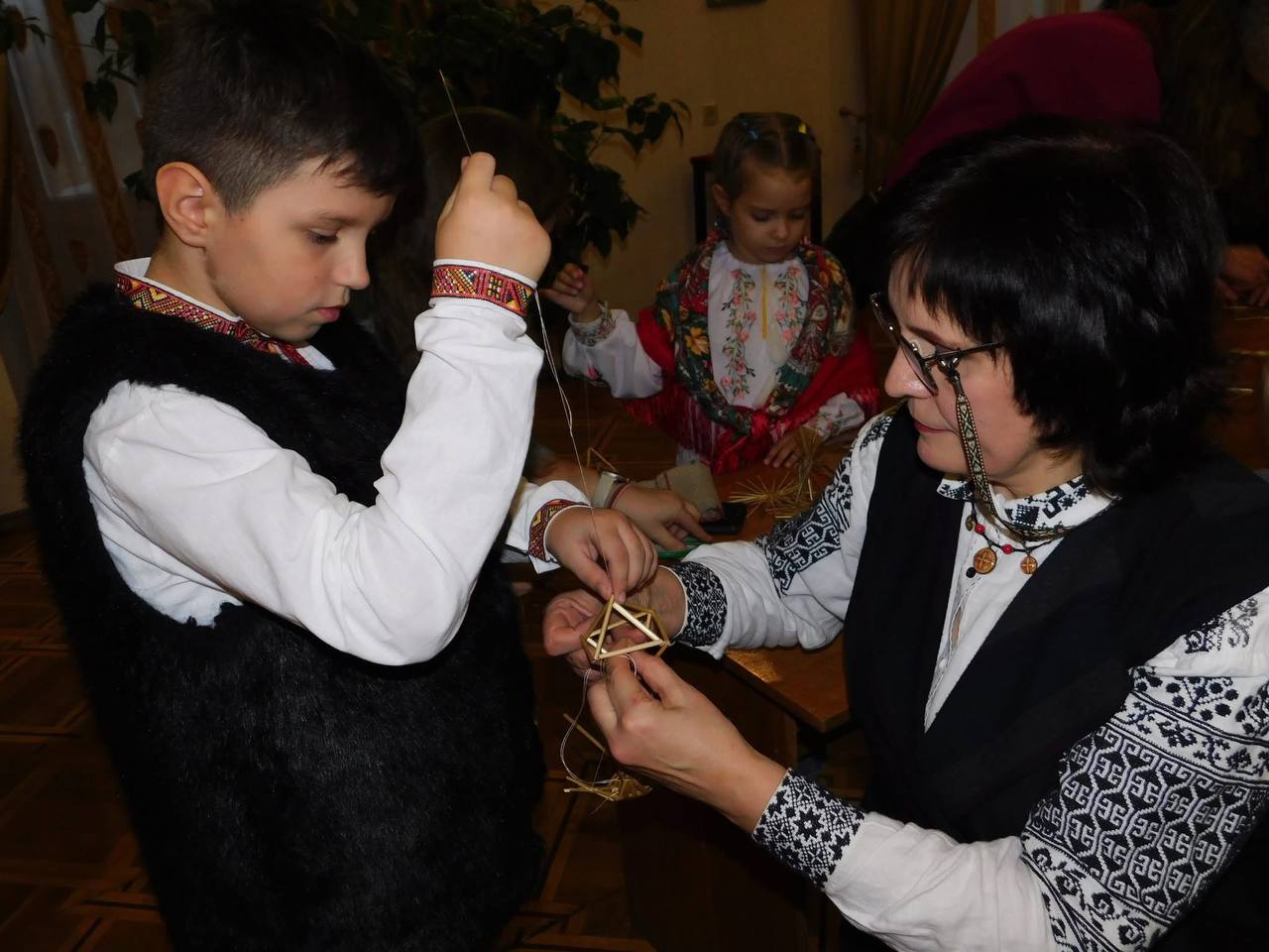 Під час заходу авторка представила солом’яні різдвяні «павуки», писанки та тематичні панно, виконані з лляних і бавовняних тканин у техніках аплікації та вибійки. До слова, за давньою традицією в українських оселях різдвяні «павуки» слугували прикрасою на святковий період і вважалися символом Всесвіту, а після свят їх не викидали — зберігали до наступного Різдва, спалюючи лише під час виготовлення нових.