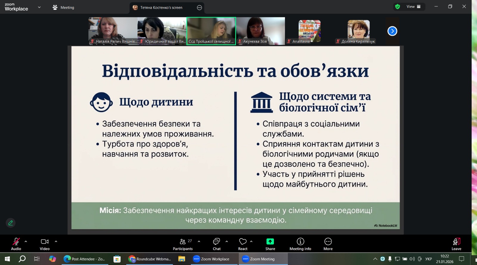 📍21 січня 2026 року відбувся онлайн інформаційний тренінг «Патронат над дитиною: професійна турбота про майбутнє» з працівниками Вишнівської сільської ради та Троїцької селищної військовової адміністрації.