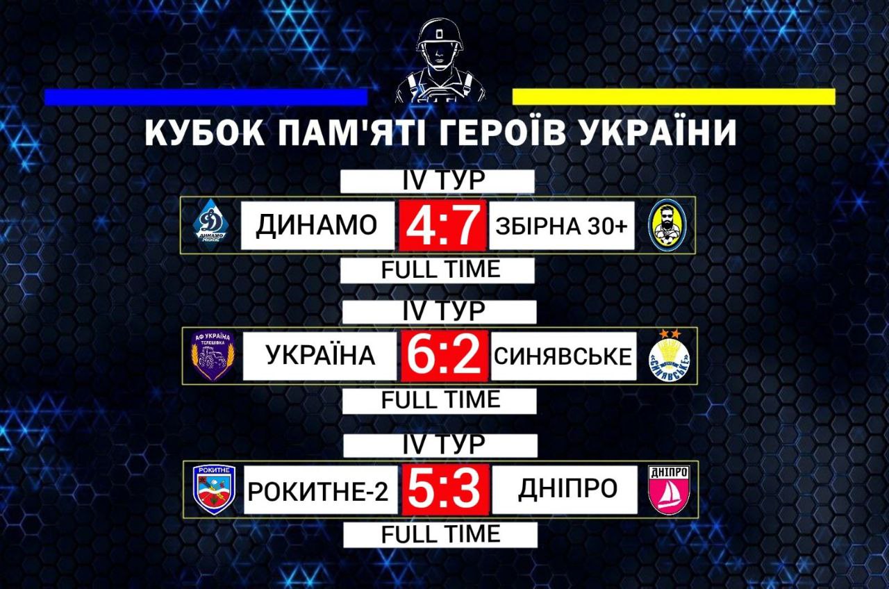 ⚽️21 червня 2025 року на спортивному майданчику Рокитнянського ліцею №3 відбулися матчі ІV туру Кубку «Пам’яті Героїв України» з міні-футболу серед аматорських команд Рокитнянської селищної територіальної громади.