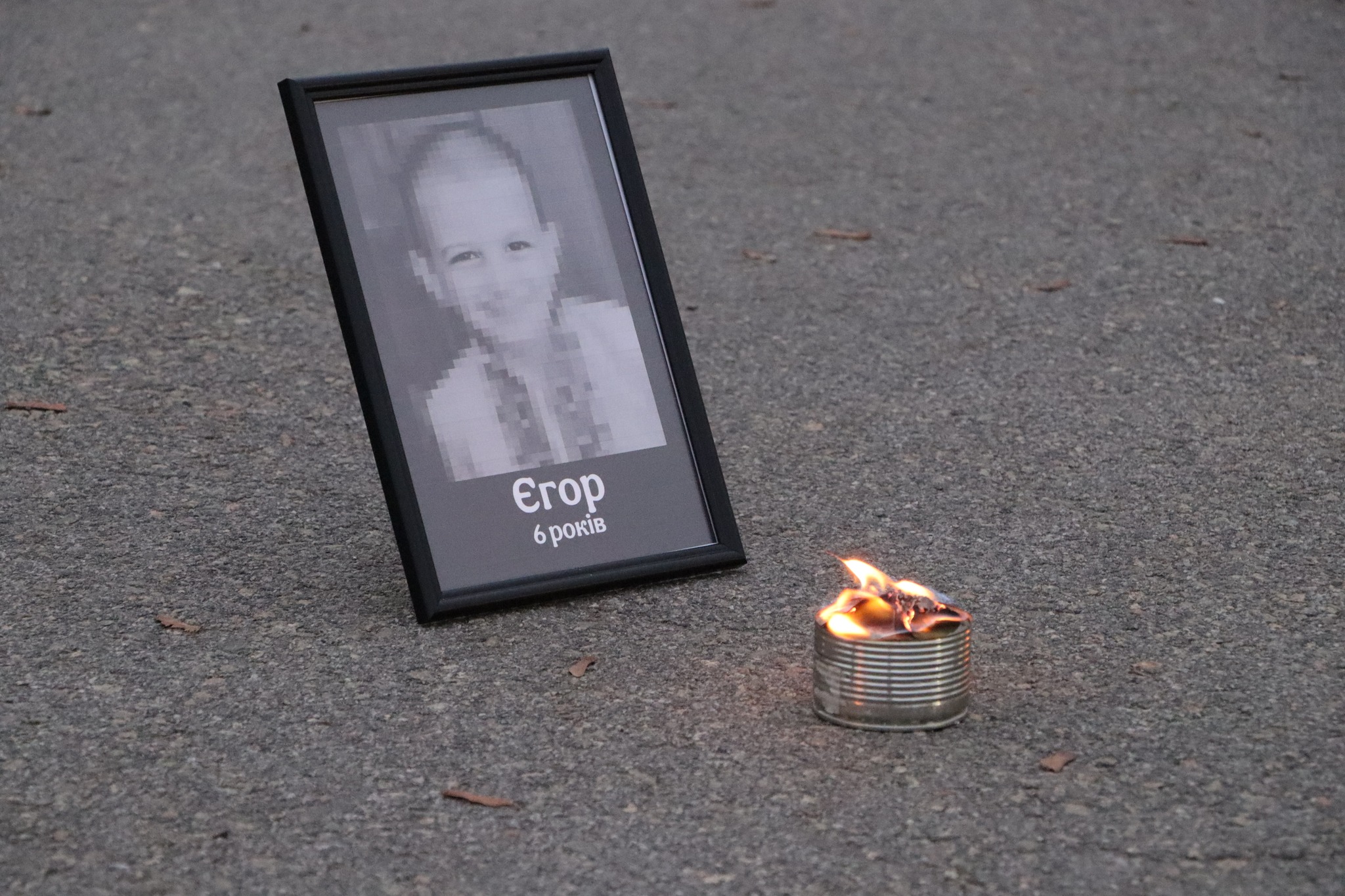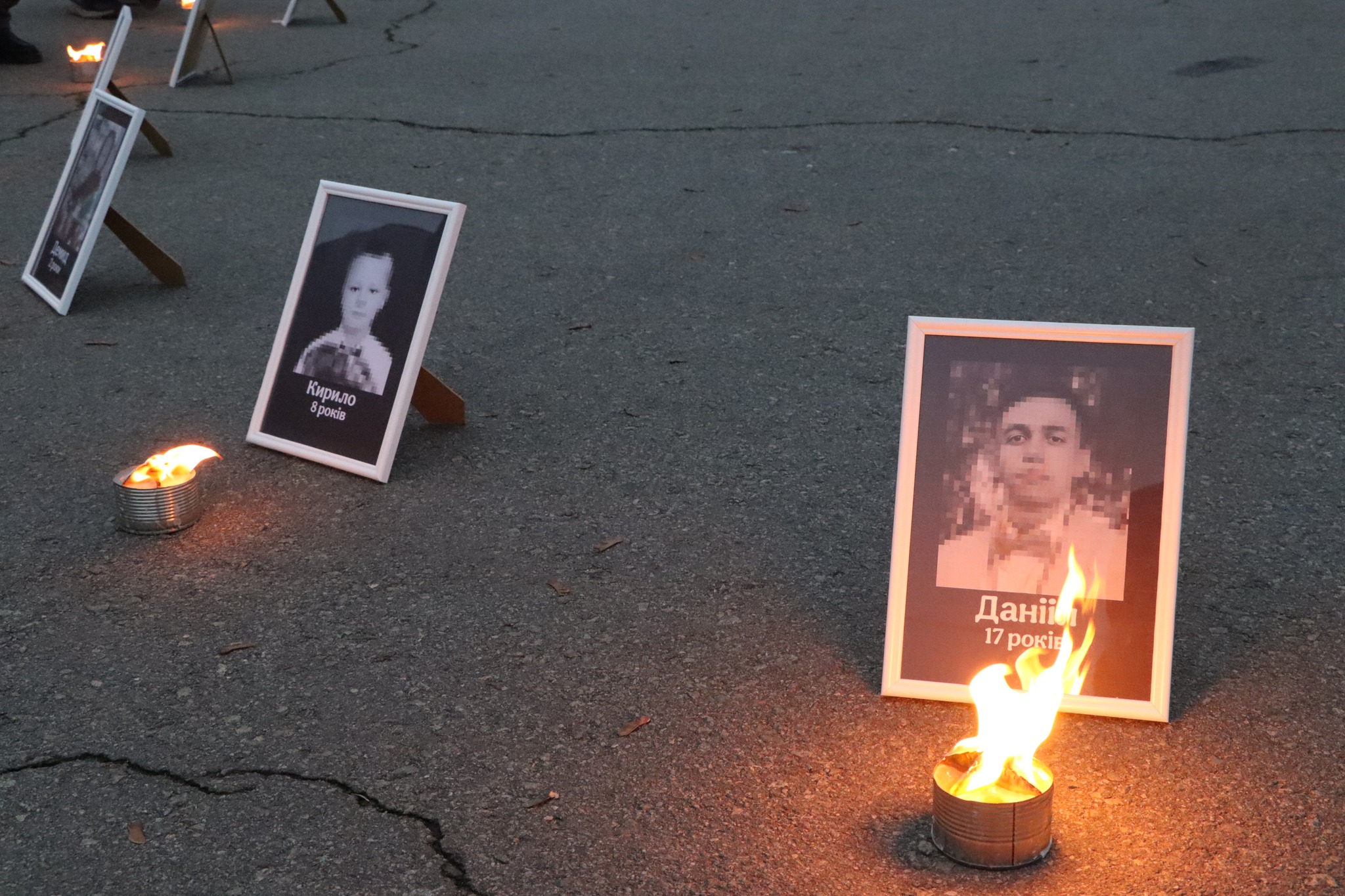 – Цією акцією ми хочемо звернути увагу на те, що війна забирає життя не лише військових, а й мирних дітей. Кожне таке фото – це обірване дитинство і нагадування про ціну російської агресії, – сказав ініціатор акції Олександр.