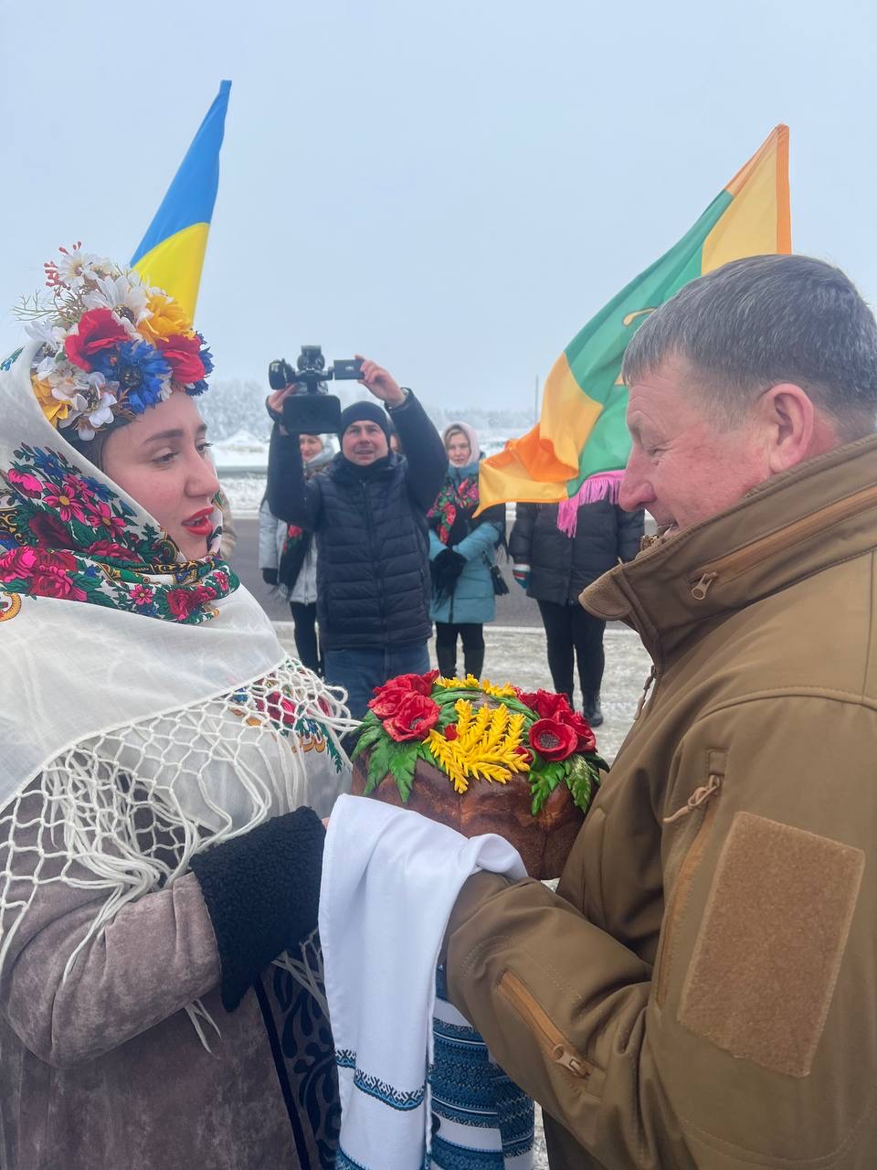 Особливим і зворушливим моментом став символічний рух делегацій назустріч одна одній з державними прапорами та обрядовими короваями, створення «живого ланцюга» та розгортання 70-метрового Прапора України — як знак нашої спільної історії, віри й майбутнього.