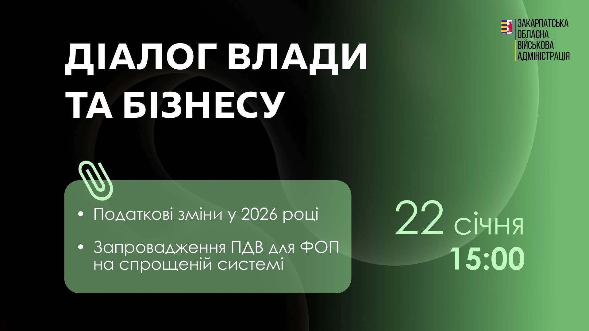 ✅ 22 січня в межах комунікаційної платформи «Діалог влади та бізнесу» пройде чергова онлайн-зустріч.
