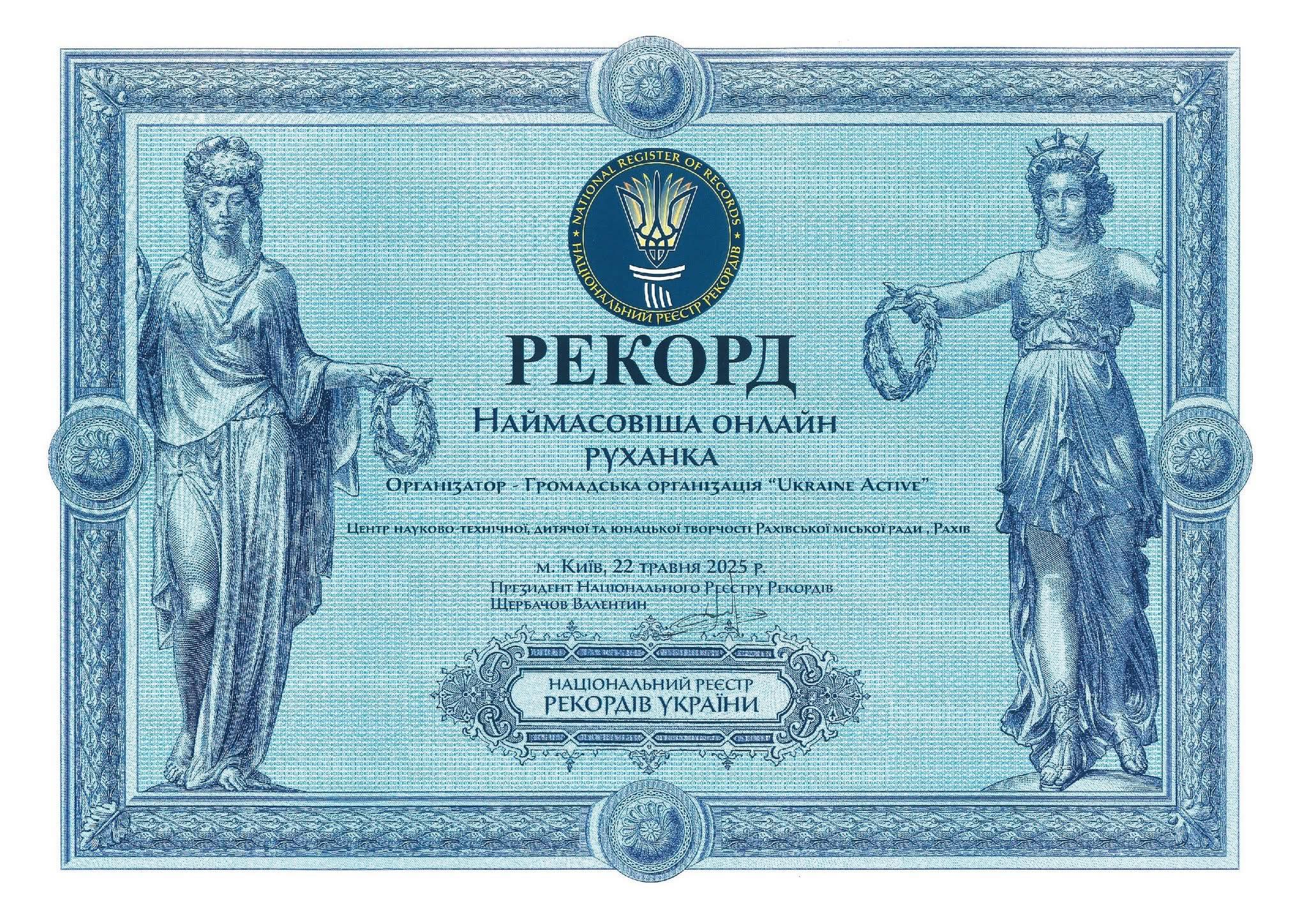 22 травня 2025 року Центр науково-технічної, дитячої та юнацької творчості Рахівської міської ради разом із громадською організацією Ukraine Active взяв участь у встановленні рекорду України — «Наймасовіша онлайн-руханка».