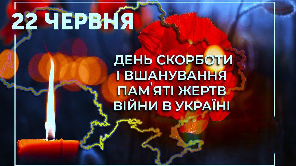 22 червня в Україні відзначається як День скорботи і вшанування пам’яті жертв війни. Ця дата глибоко закарбована в національній історії, символізуючи початок однієї з найтрагічніших сторінок Другої світової війни. Саме цього дня, у 1941 році, нацистська Німеччина підступно напала на територію України, розв’язавши криваву бійню, що забрала мільйони життів. На фронтах, у жахливих умовах окупації, у концтаборах смерті, серед беззахисного мирного населення та в партизанських лісах – кожен, хто став жертвою того жахливого конфлікту, навіки залишиться в нашій пам’яті. Україна, як ніхто інший, відчула на собі всю жорстокість світових конфліктів, перетворившись на арену запеклих боїв та масових трагедій. Ми схиляємо голови перед кожною загубленою душею, вшановуючи пам’ять тих, хто віддав своє життя за мир та свободу.Проте, сьогоднішній день пам’яті набуває особливого значення, адже трагічна історія України знову повторюється. У XXI столітті наша країна вчергове переживає повномасштабну війну. З 2014 року, і особливо з початку повномасштабного вторгнення 24 лютого 2022 року, Україна знову стала мішенню жорстокої агресії. Ця нова хвиля агресії, розв’язана путінською росією, принесла безліч руйнувань, незліченні втрати та невимовні страждання. Міста і села перетворюються на руїни, мільйони доль зруйновані, а поняття геноциду, полону, депортацій та катівень знову стали трагічною реальністю сучасного життя українців. Ця війна в Україні, яка, здавалося б, мала залишитися лише у історичних хроніках минулого століття, знову триває, і знову – на нашій рідній землі. Це нагадування про те, що свобода та незалежність ніколи не даються легко, і за них доводиться боротися щодня.У цей день, коли ми вшановуємо пам’ять мільйонів жертв, ми також розуміємо важливість збереження національної єдності та непохитної волі до перемоги. Вшанування пам’яті про минулі жертви є не просто даниною поваги, а й потужним уроком для сьогодення та майбутнього. Це нагадування про ціну, яку довелося заплатити за мир, і про те, наскільки важливо протистояти будь-якій формі агресії. Кожен українець, який загинув у боротьбі за незалежність, незалежно від її історичного періоду, є героєм, пам’ять про якого має жити вічно. Наша єдність – це не просто об’єднання людей, це об’єднання сердець і душ навколо єдиної мети: захисту нашої держави. Пам’ять про тих, хто не повернувся, є нашою найсильнішою зброєю. Вона надихає нас не здаватися, а продовжувати боротьбу. Єдність нашого народу є нашою нездоланною силою. А перемога – це наш спільний обов’язок перед усіма, хто загинув, перед майбутніми поколіннями, які повинні жити у вільній та незалежній Україні. Ми пам’ятаємо, ми боремося, ми переможемо.