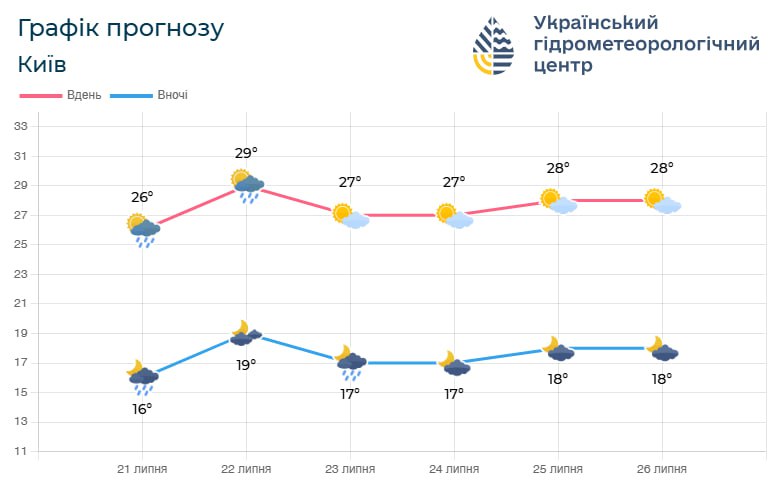 Погода на Київщині: прогноз на 22-26 липня