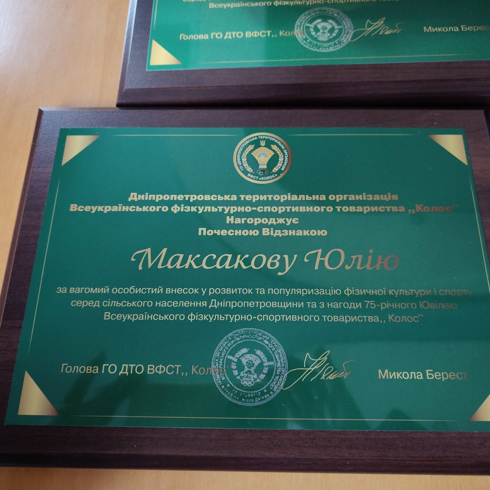 🔹 Почесною відзнакою Дніпропетровської територіальної організації ВФСТ «Колос» нагороджено