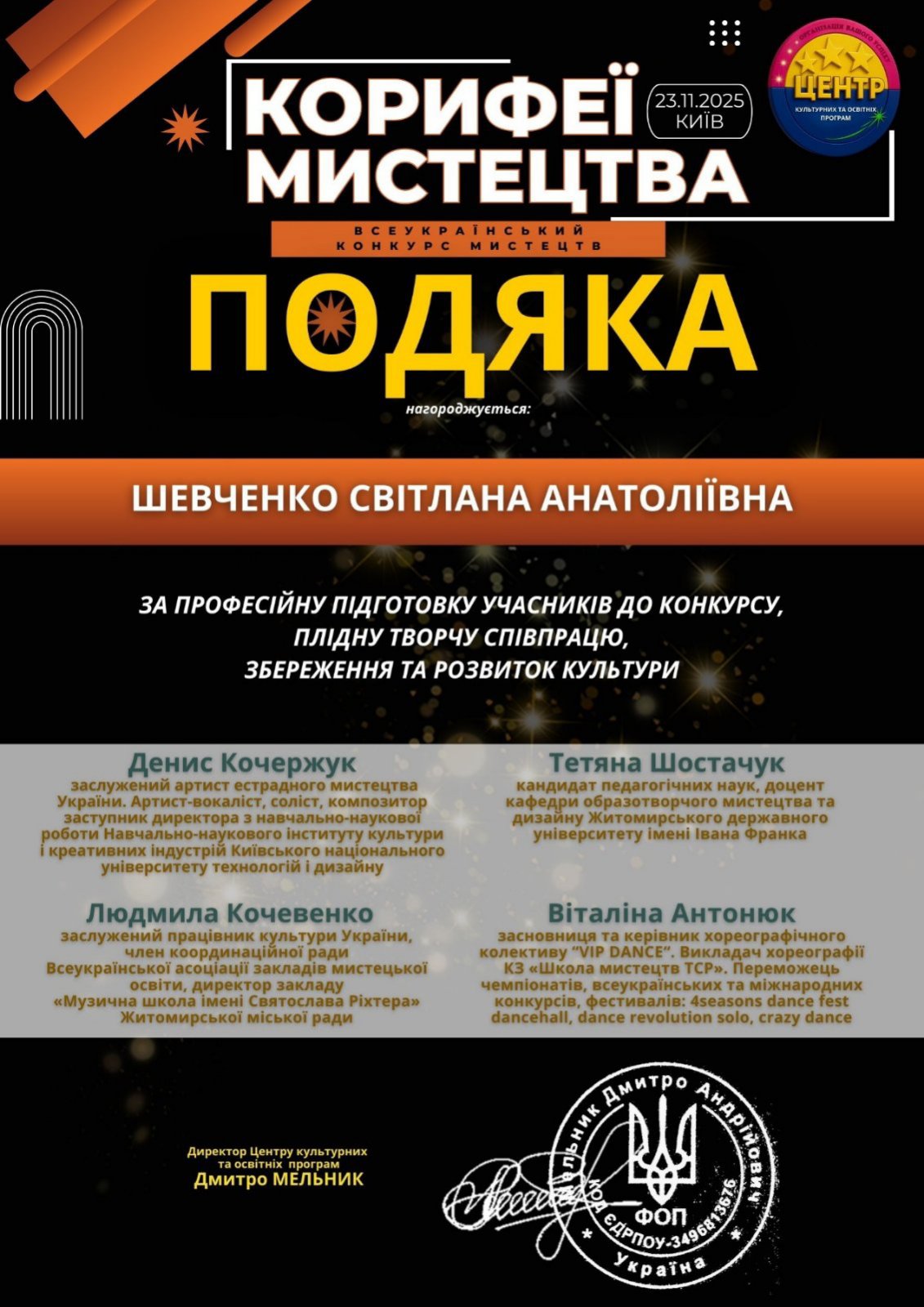 23 листопада у місті Києві відбувся Всеукраїнський конкурс мистецтв “Корифеї мистецтва”.