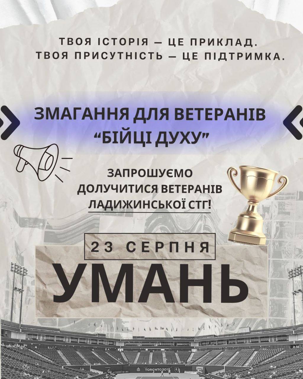 23 серпня 2025 року місто Умань стане місцем проведення унікального спортивного заходу — Чемпіонату Уманщини з адаптивних видів спорту для ветеранів під назвою «Бійці духу».