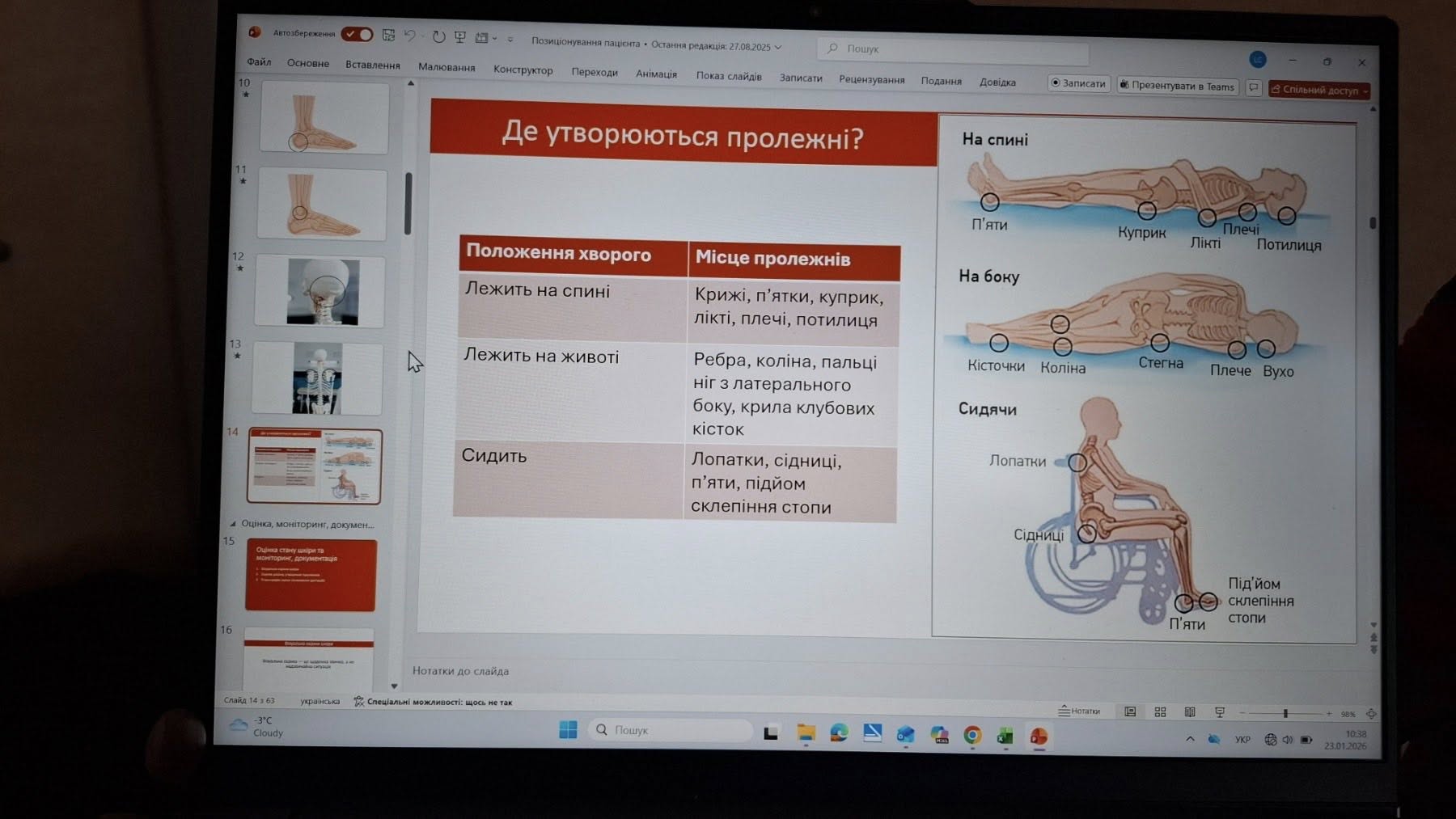 23 січня для студентів “Університету третього віку” КУ “ЦНСПНМР” було проведено лекцію на тему “Позиціонування пацієнта і пролежні”.