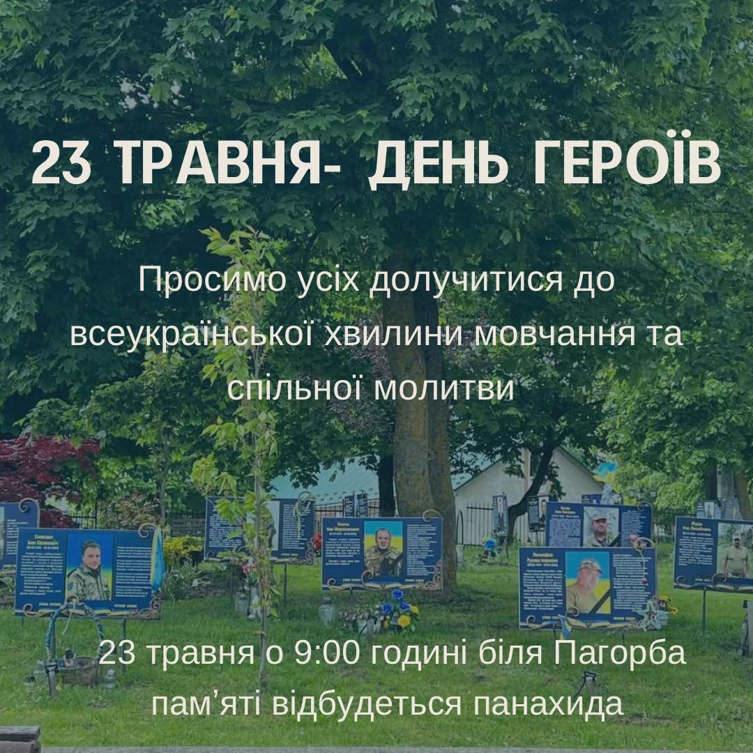 23 травня – День Героїв України. Це день, коли ми віддаємо шану пам’яті всіх тих, хто поклав своє життя за свободу та незалежність нашої країни. У цей день ми згадуємо тих, хто віддав найцінніше – своє життя – заради України. Це час для вшанування їхньої мужності, відданості та героїзму. Важливо зупинитися на мить, щоб вшанувати наших полеглих Захисників та згадати про тих, хто зараз, у цю хвилину, стоїть на передовій, боронячи нашу землю від ворога.