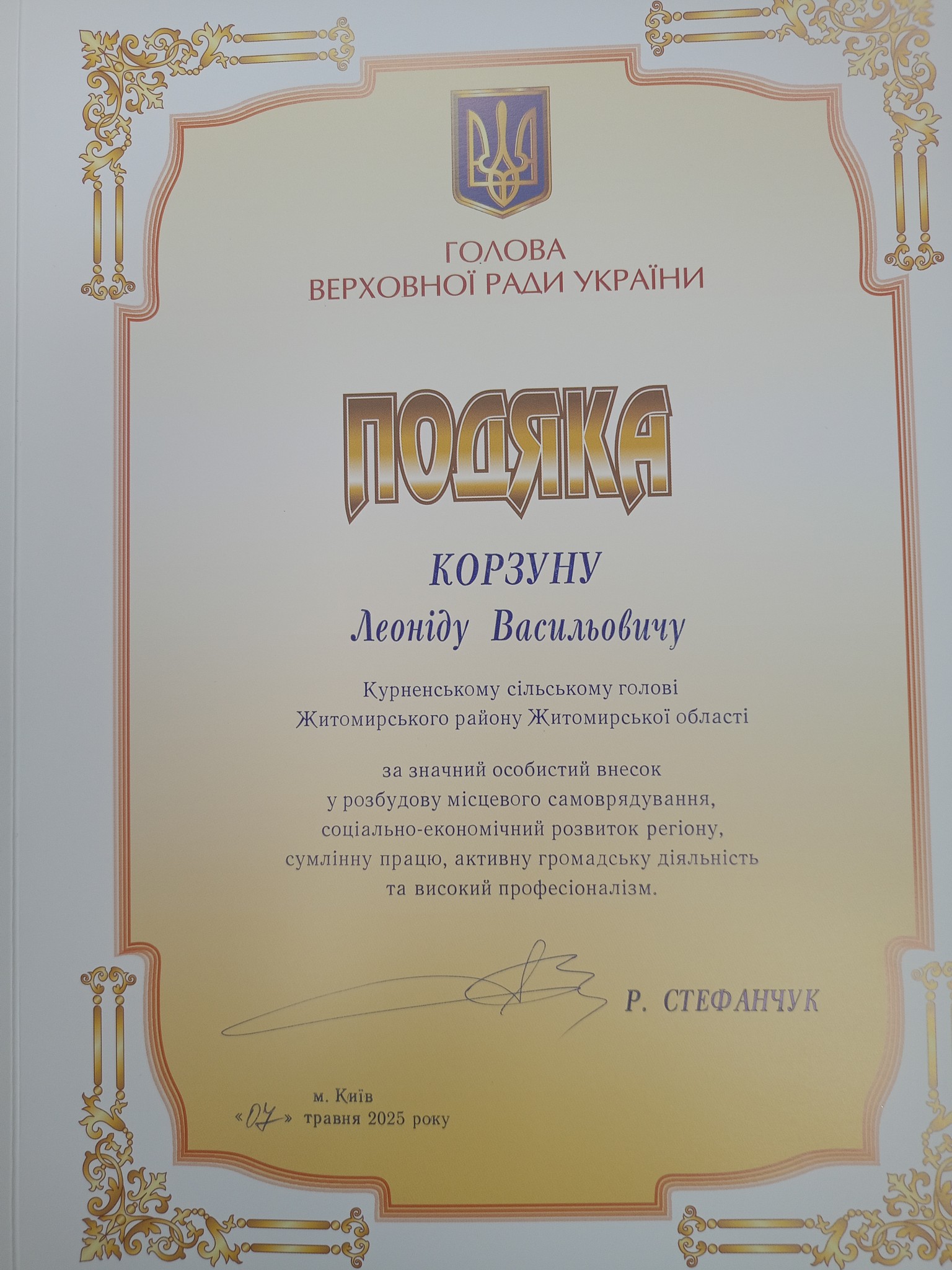 Під час заходу дружину загиблого Героя, Оксану Вікторівну Костиріну, нагороджено Медаллю «За жертовність і любов до України» за підписом Митрополита Епіфанія, предстоятеля Православної Церкви України. Сільський голова Леонід Корзун також отримав подяку від Голови Верховної Ради України за вагомий особистий внесок у розбудову місцевого самоврядування, соціально-економічний розвиток регіону, сумлінну працю, активну громадську діяльність та високий професіоналізм. Ці нагороди є визнанням їхньої відданості та праці на благо України.