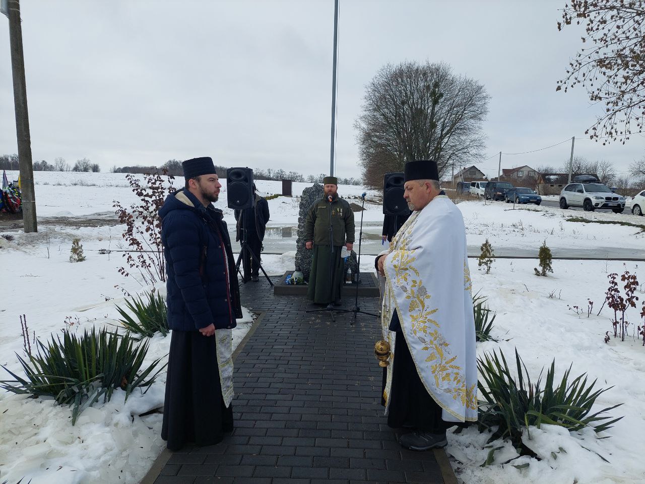 Далі заупокійну панахиду за спокій душ вбитих та померлих Героїв відслужили священнослужителі Богуславського благочиння Православної Церкви України. Військовий капелан зазначив, що на війні пліч-о-пліч стояли представники різних релігійних течій, і перед виходом на завдання кожен захисник звертається по допомогу саме до Господа. Це свідчить про глибоку віру наших воїнів.