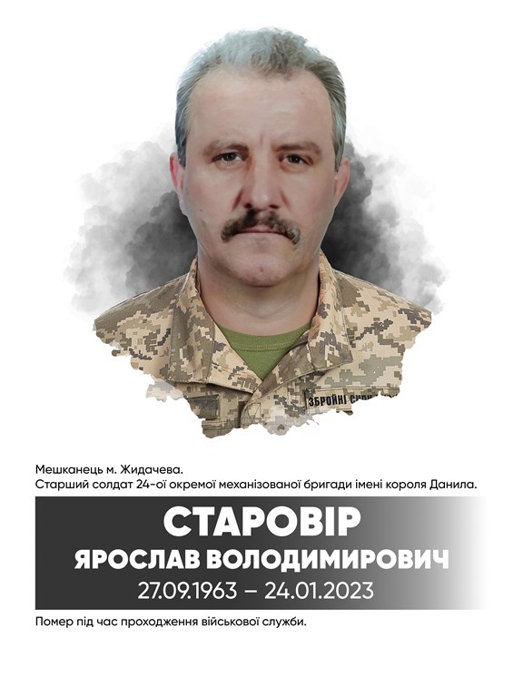 Старший солдат 24-ї окремої механізованої бригади імені короля Данила Ярослав Старовір помер у рідному місті Жидачеві 24 січня 2023 року, перебуваючи у короткотерміновій відпустці. Чин похорону Захисника України відбувся 27 січня 2023 року в місцевому храмі Воскресіння Господнього. Поховали Воїна на кладовищі в місті Жидачеві.