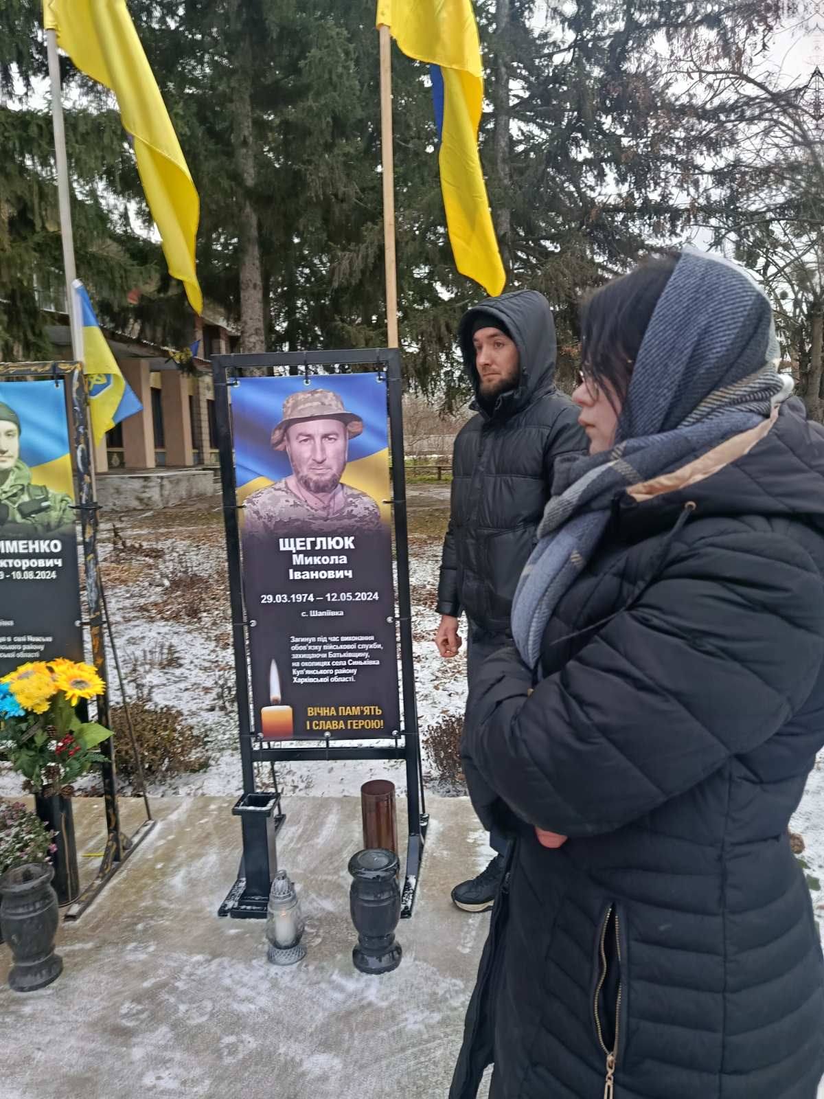 Ім’я Героя – нашого земляка Щеглюка Миколи Івановича, який покинув поле бою на землі й приєднався до Небесного Війська, щоб ангелом світла оберігати рідну землю та свій народ від темряви й зла, – увічнено на Алеї Слави.