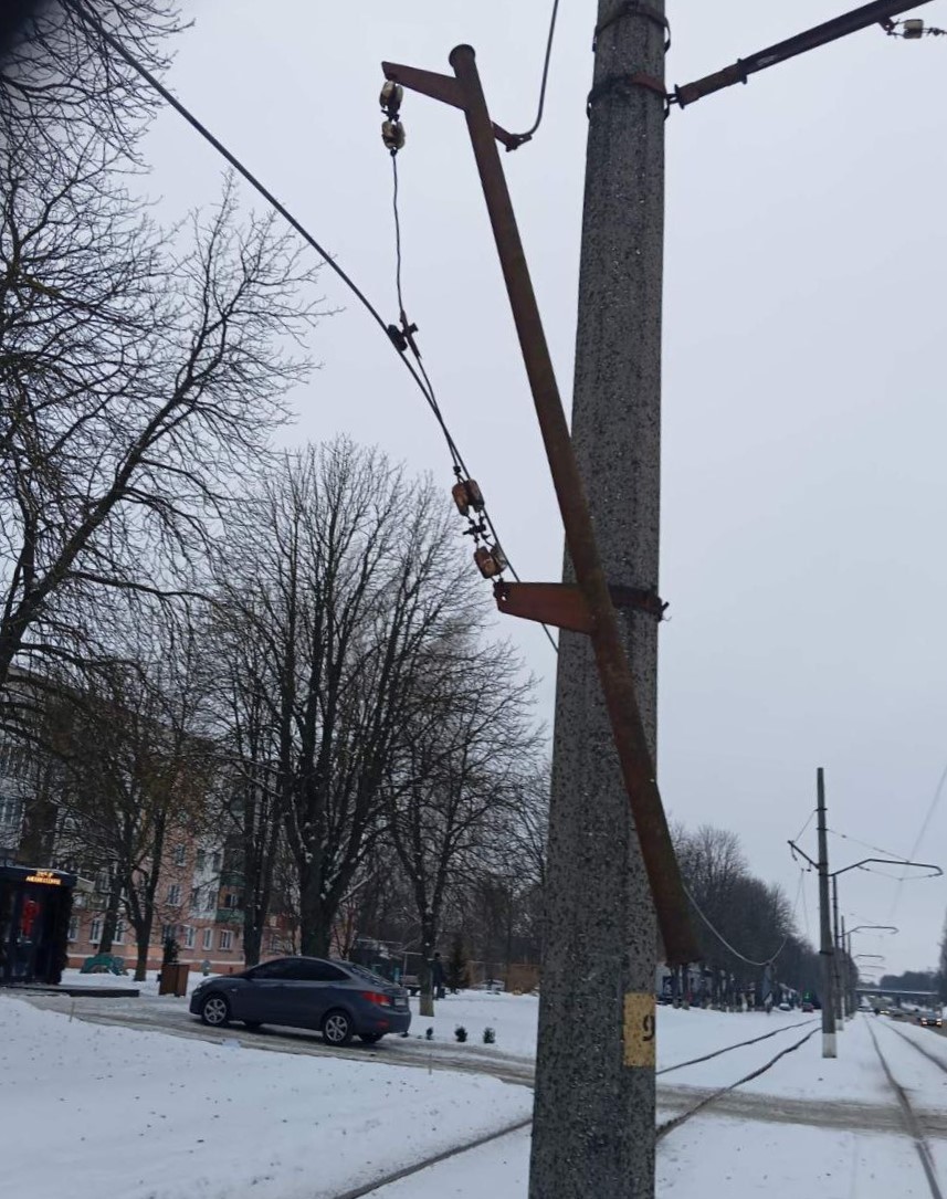Відбулося значне ушкодження – деформація та ушкодження кронштейнів, розтяжок та деталей кріплення – в районі колієпроводу та пр. Миру