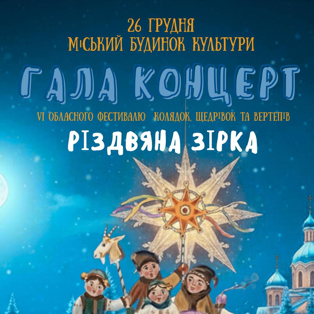 ⭐ гала-концерт обласного конкурсу-фестивалю колядок, щедрівок та вертепів «Різдвяна зірка» – зі щирими колядками, давніми традиціями та родинним теплом, яке передається з покоління в покоління.