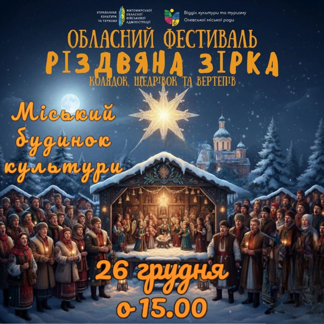 ⭐ гала-концерт обласного конкурсу-фестивалю колядок, щедрівок та вертепів «Різдвяна зірка» – зі щирими колядками, давніми традиціями та родинним теплом, яке передається з покоління в покоління.