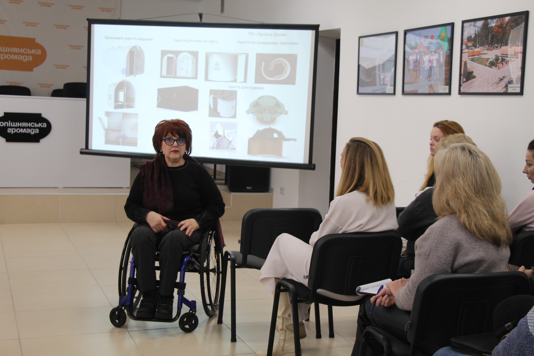 Тетяна Жидкова, радниця Національної асамблеї людей з інвалідністю України, провела практичну сесію з нових державних будівельних норм, особливо тих, що стосуються захисних споруд. Після теоретичної частини учасники перейшли до практичного аудиту укриття місцевого Центру первинної медико-санітарної допомоги. Це дозволило оцінити поточний стан доступності та визначити шляхи покращення.