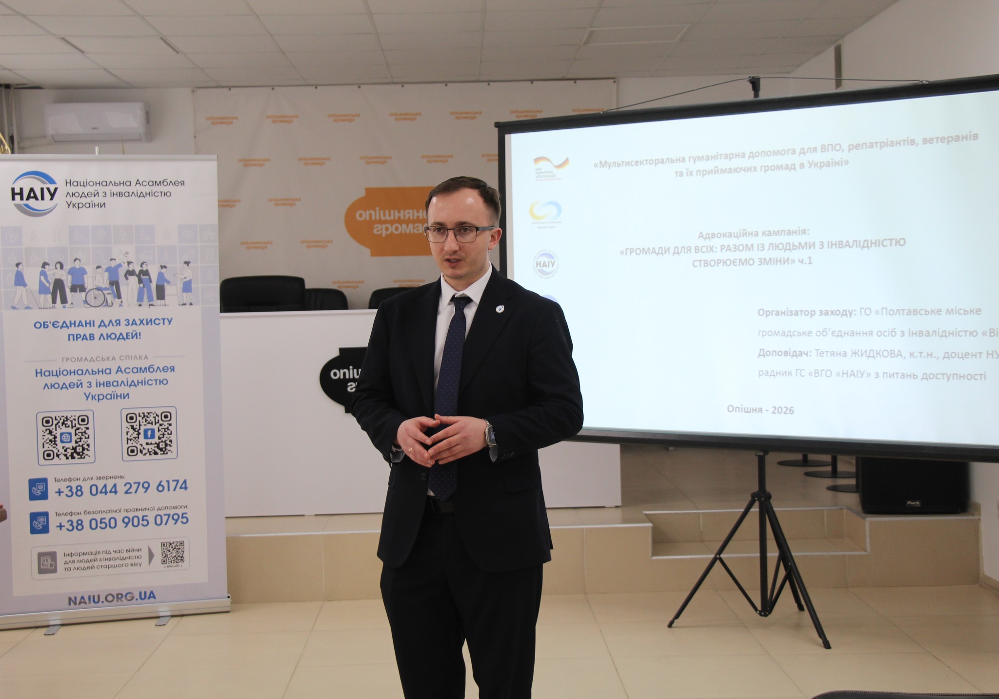26 лютого в Опішні відбулася важлива адвокаційна кампанія під гаслом «Громади для всіх: разом із людьми з інвалідністю створюємо зміни». Захід, організований «Національною Асамблеєю людей з інвалідністю в Україні» в рамках проекту «Мультисекторальна гуманітарна допомога для ВПО, репатріантів, ветеранів та їх приймаючих громад в Україні», зібрав ключових стейкхолдерів для обговорення створення безбар’єрного середовища.