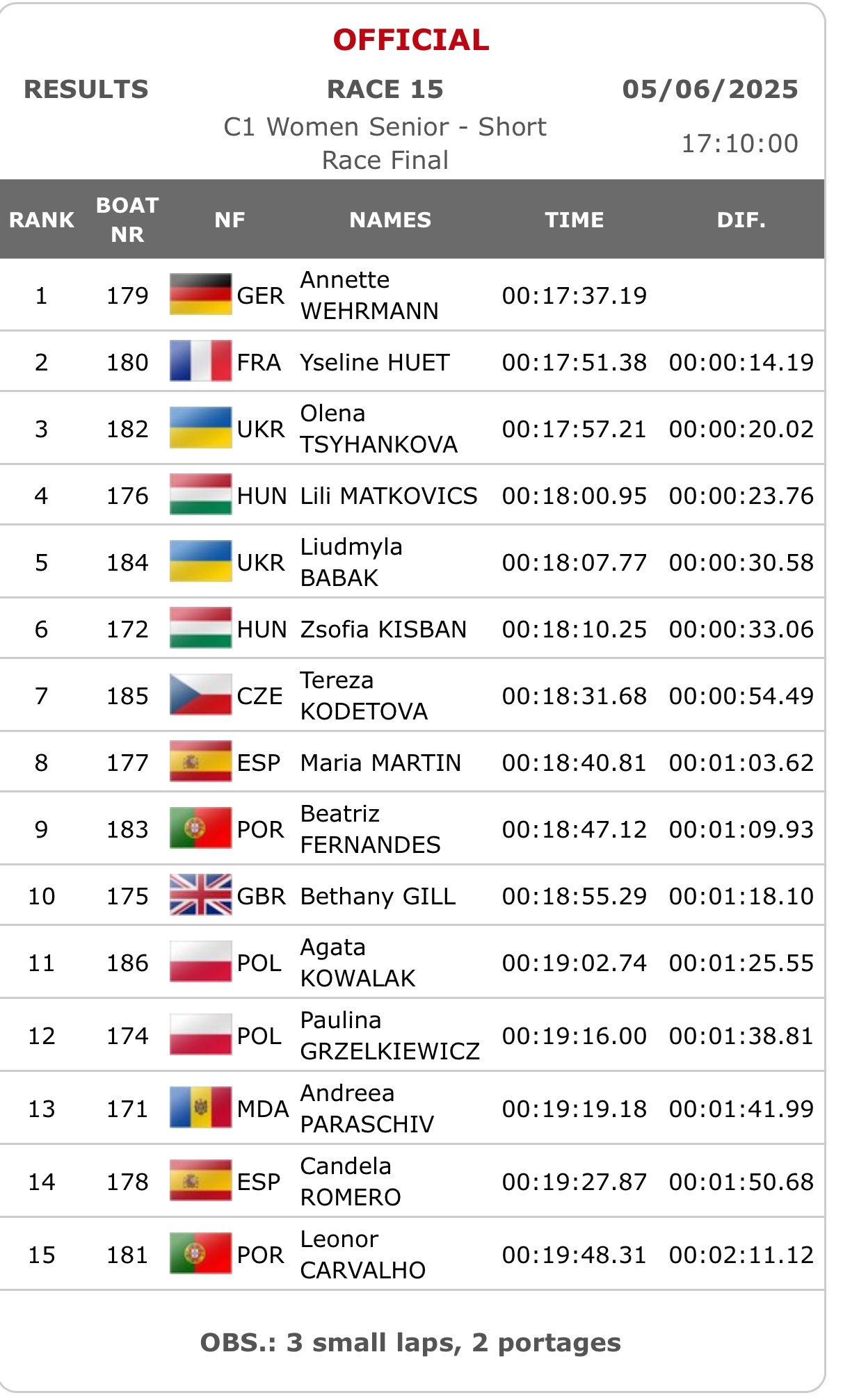 👊💪Олена Циганкова продемонструвала неймовірну волю до перемоги. У жорсткій боротьбі, утримуючи позицію в топ-3 протягом значної частини дистанції, спочатку фінішувала четвертою. Однак, згодом стало відомо про дискваліфікацію срібної призерки, угорки Жофії Кішбан, за порушення правил під час гонки (їй було нараховано 30 секунд штрафу). Це дозволило українській спортсменці Олені Циганковій піднятися на одну сходинку вгору та здобути бронзу! Людмила БАБАК посіла 5-е місце.
