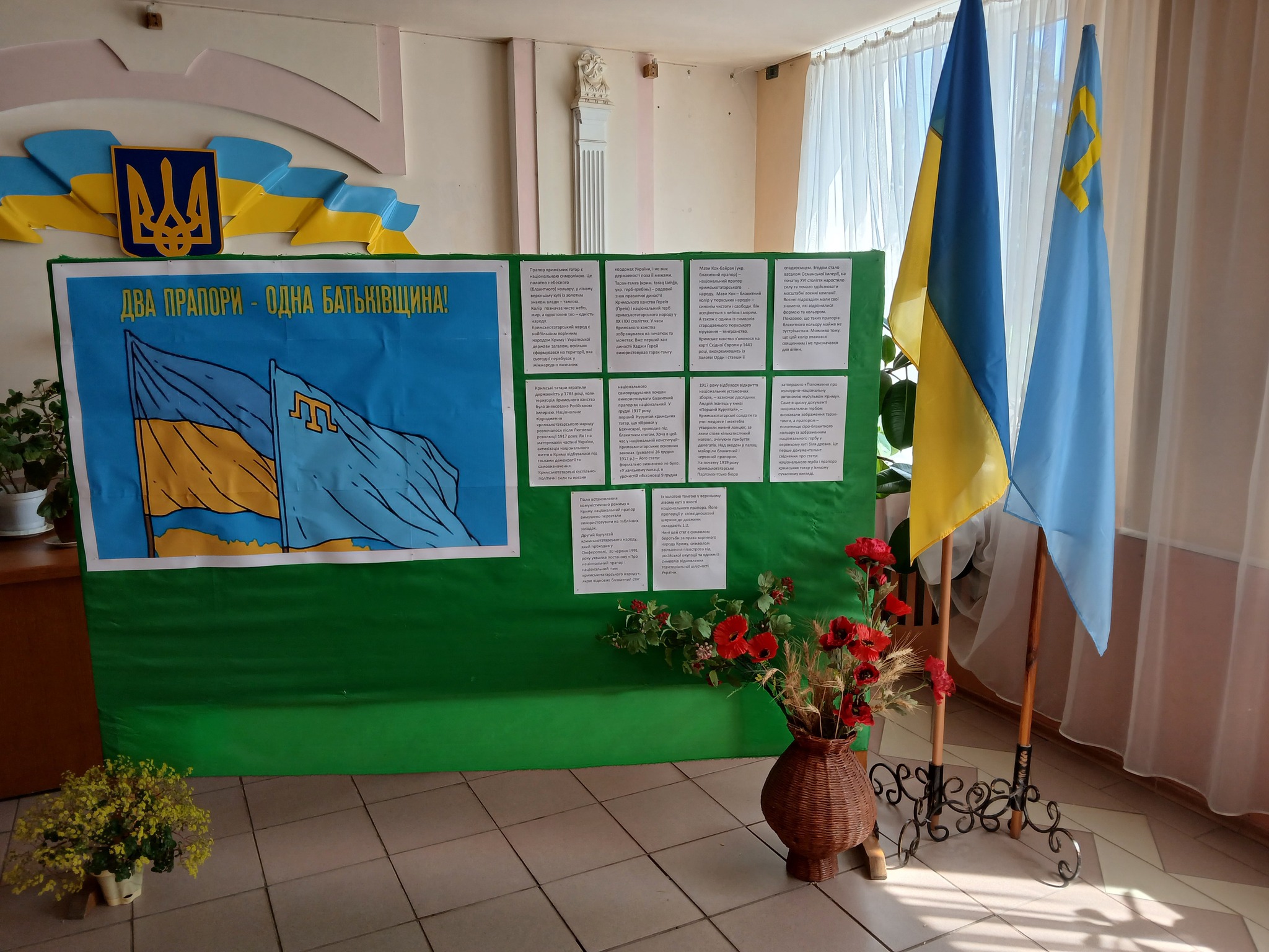 26 червня до Дня кримськотатарського прапора в фоє оформлено тематично-інформаційний стенд “Два прапори-одна Батьківщина”.