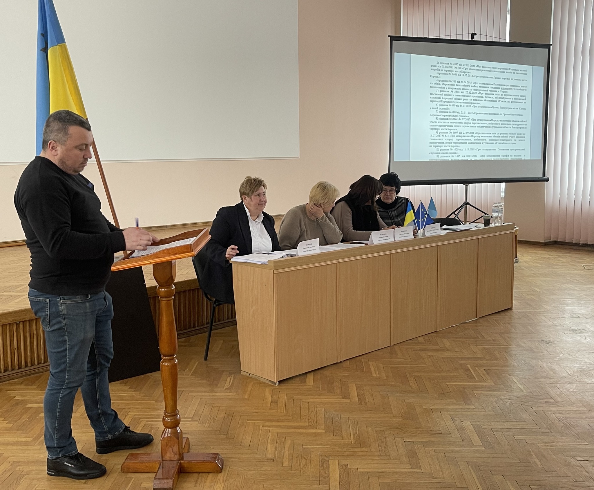 🔹«Про звіт щодо здійснення державної регуляторної політики виконавчими органами Корецької міської ради у 2025 році» (Інформував Микола ЛЯШУК, начальник відділу містобудування, архітектури, житлово-комунального господарства, економічної політики, цивільного захисту та надзвичайних ситуацій);