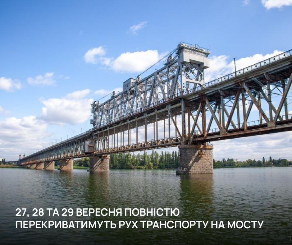 Кременчук: Перекриття мосту через Дніпро 27-29 вересня