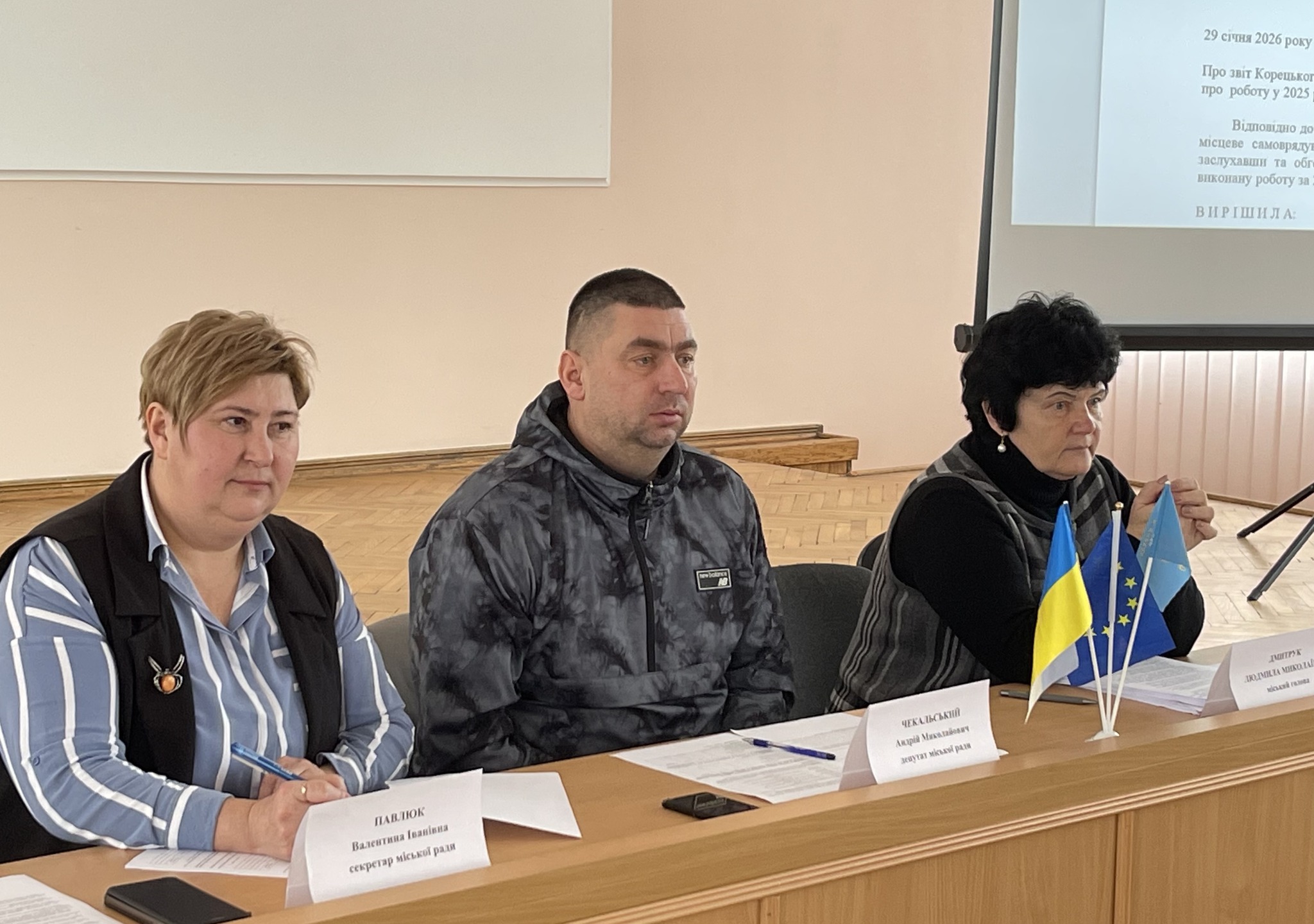 У рамках підготовки до зазначеного пленарного засідання 82-ї сесії Корецької міської ради 27.01.2026 року також проведено засідання постійної комісії з питань земельних відносин, екології, будівництва та розвитку інфраструктури, охорони пам’яток та благоустрою під головуванням Аліни КОВАЛЕНКО, голови постійної комісії, на якому розглянуто 73 земельних питань, а також схвалено проекти рішень: «Про затвердження бюджету Корецької міської територіальної громади за 2025 рік», «Про внесення змін до бюджету Корецької міської територіальної громади на 2026 рік (інформувала Людмила ВОЯТ, начальник фінансового відділу міської ради).