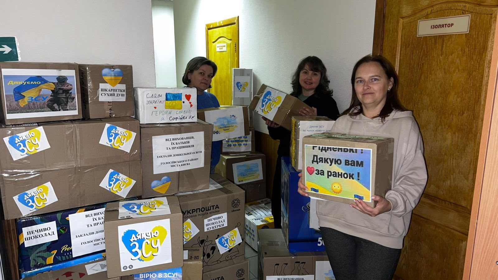 У цей непростий час вихователі, батьки та діти об’єдналися навколо волонтерського руху. З нагоди Дня захисників і захисниць України у дитячих садках Голосіївського району були організовані зустрічі з воїнами, виставки дитячих робіт, пізнавальні майстер-класи та розважальні заходи. Особливо важливим став їхній спільний внесок у благодійну акцію «Пакунки добра і вдячності» для підтримки наших Збройних Сил України.