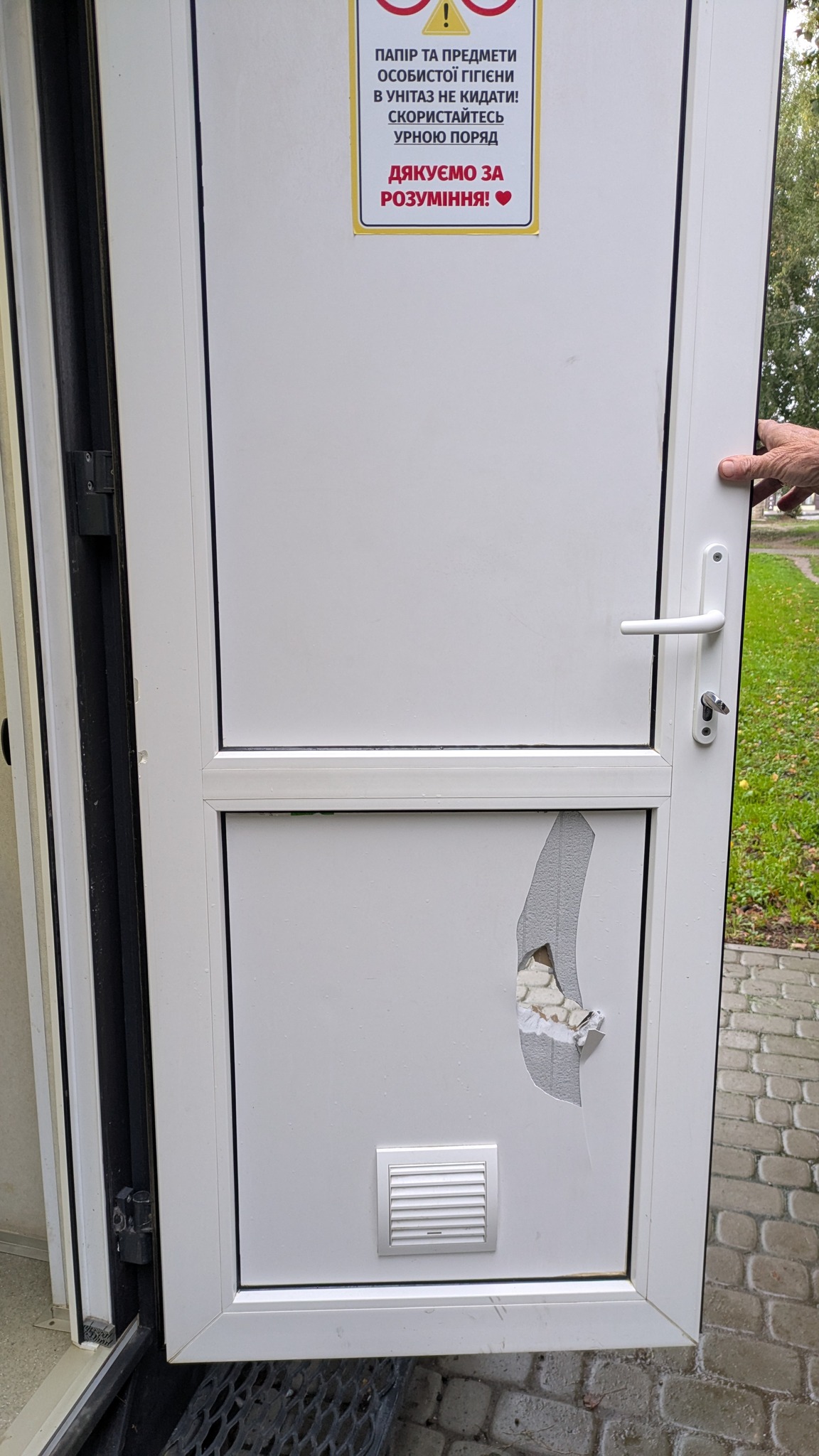 28 вересня в Млинівській громаді стався неприємний інцидент, пов’язаний із пошкодженням громадської вбиральні. Цей об’єкт, розташований біля автостанції у Млинові, зазнав вандалізму: вхідні двері однієї з кабінок були пробиті наскрізь. Про виявлене пошкодження повідомили працівники, відповідальні за благоустрій селищної ради, які щоденно дбають про чистоту та належний стан вбиральні.